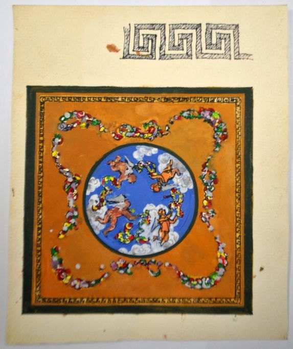 Thieme, Alexander Georgivitj (1953 - 2003) Rusland/Danmark: Udkast til loft, 1994. Samarbejde med Piotr Reichet. Akvarel på papir. H: 22,5 cm. B: 18,5 cm.