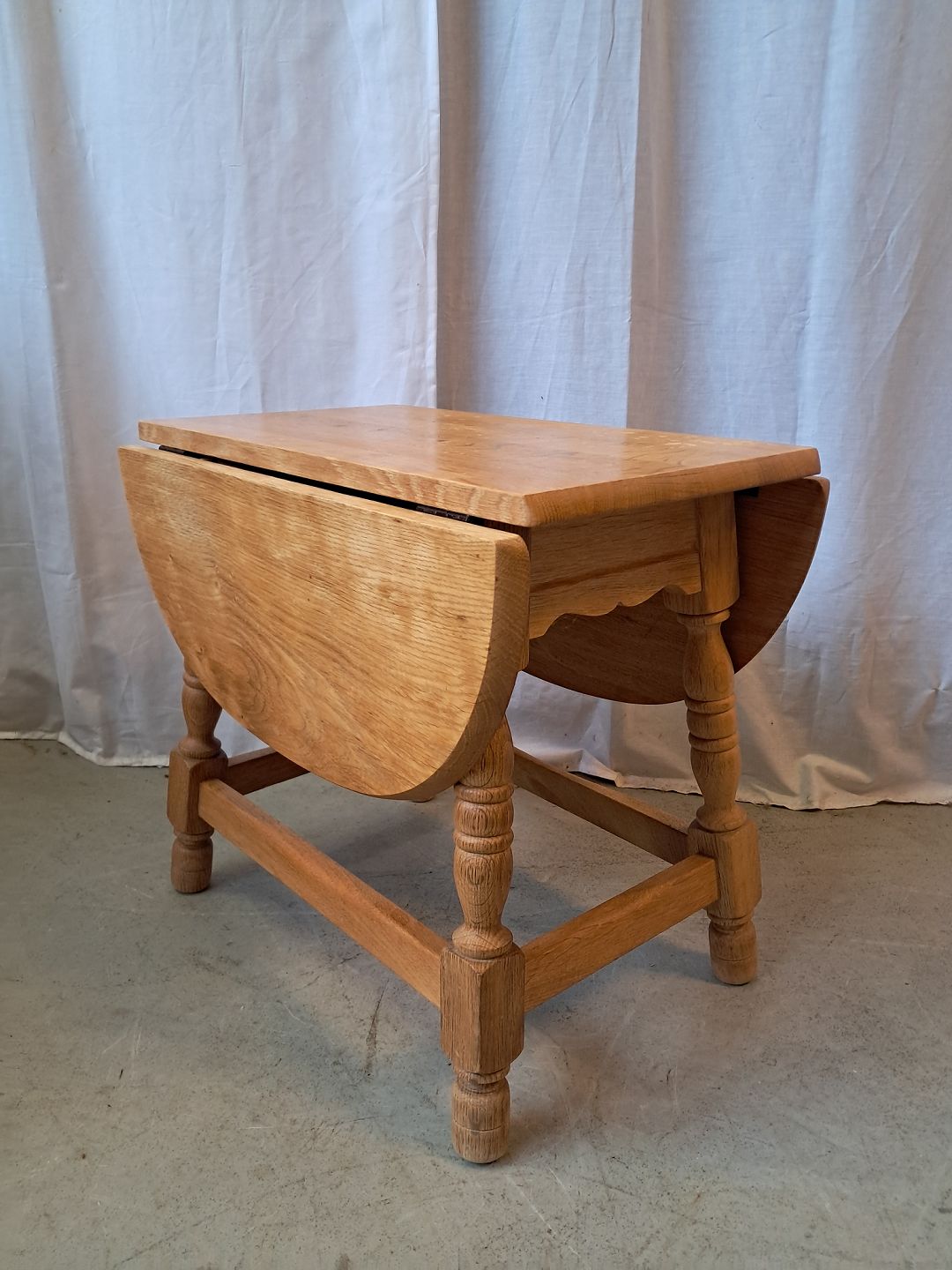 Lille klapbord i massivt egetræ, fra 1980erne.Det har brugsspor.
