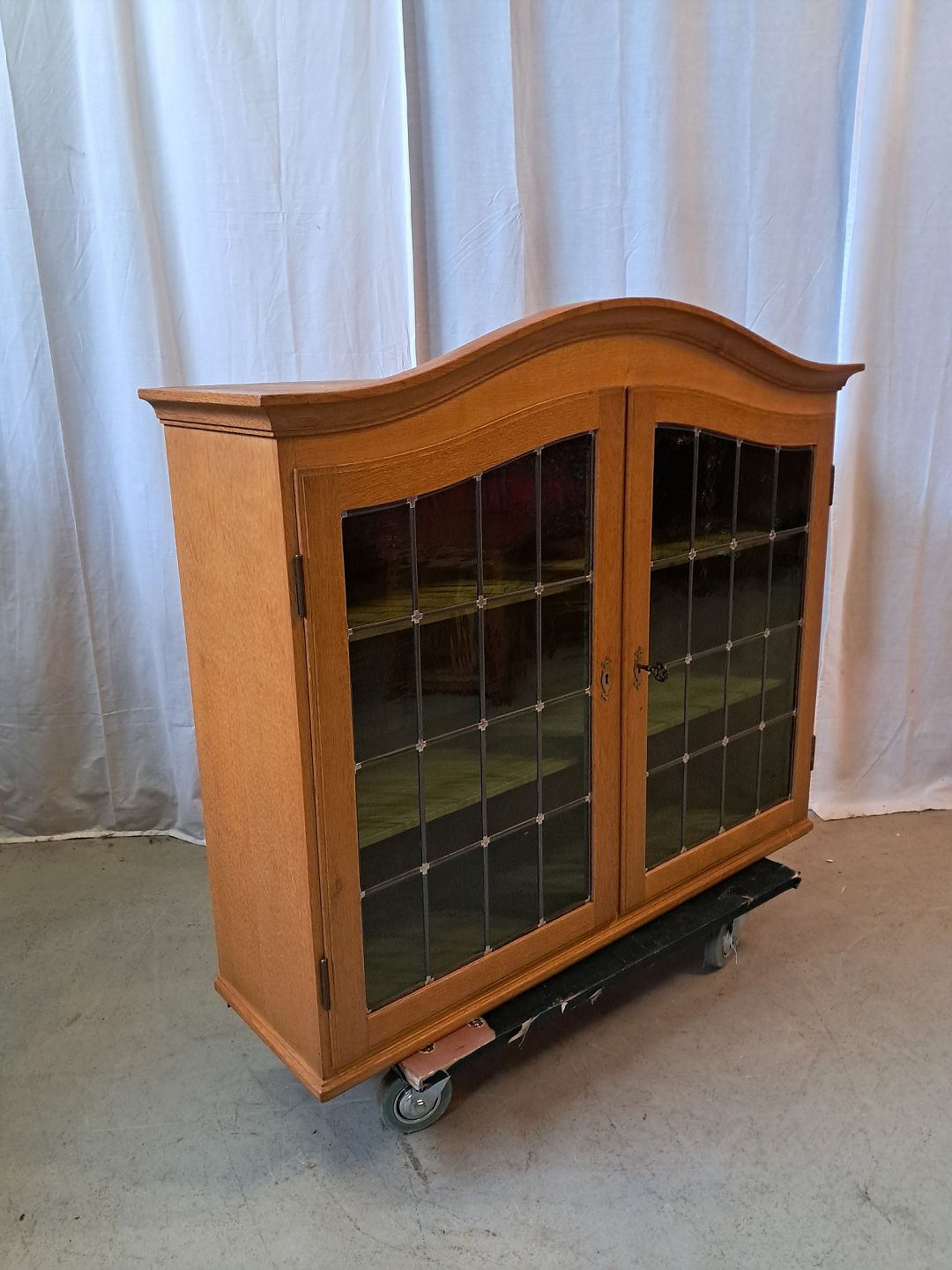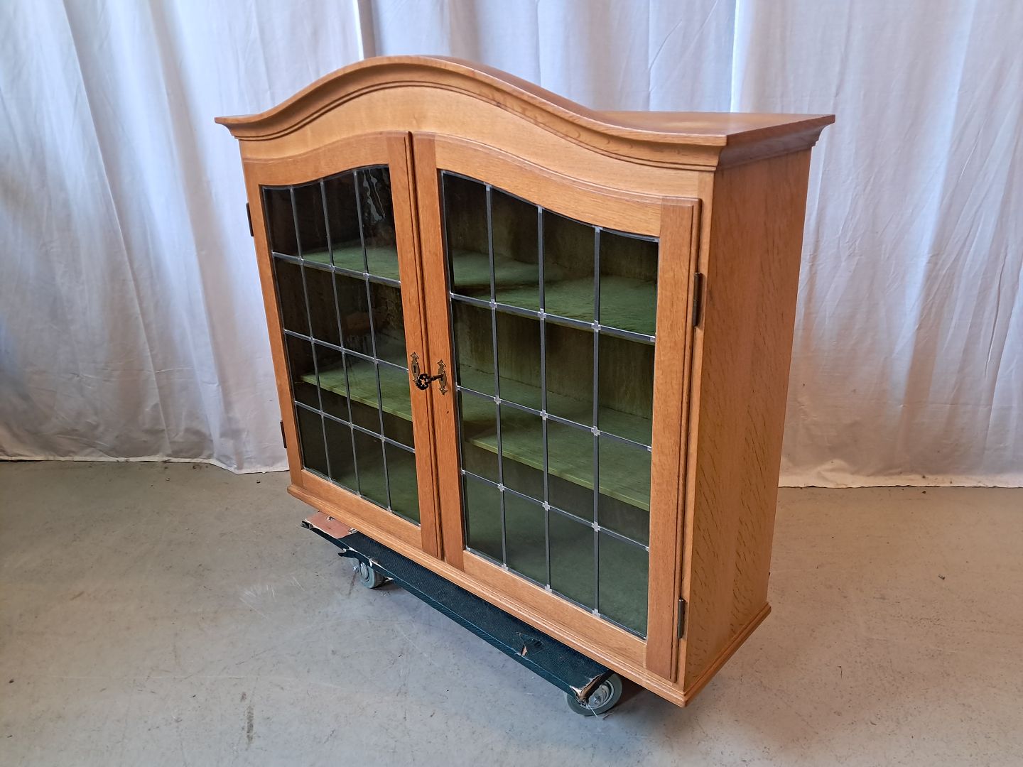 Skab i fineret egetræ, fra 1980erne.Det har brugsspor og kommer fra et ryger hjem.
