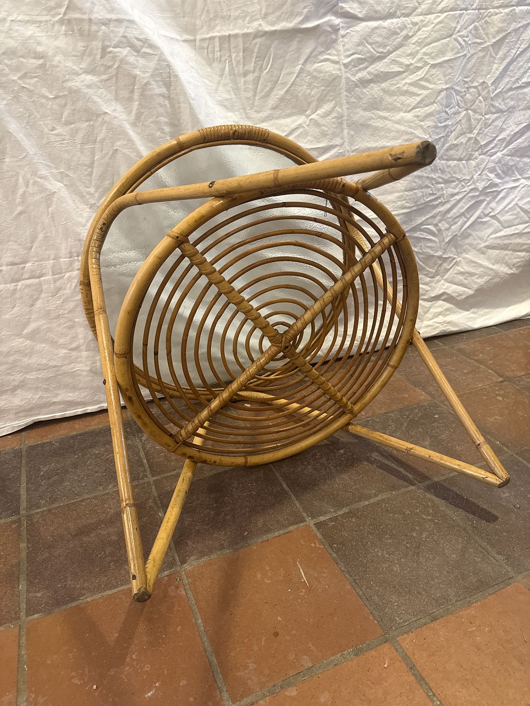 Dansk møbelproducent rundt sofabord i bambus m. plade i råglas.Fremstillet ca. 1950'erne.