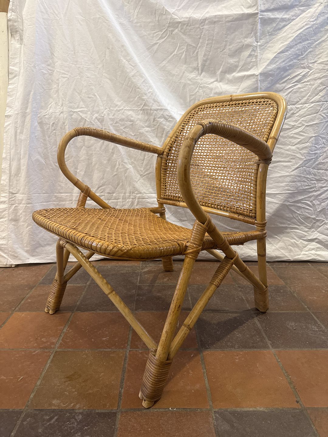 Dansk møbelproducent kurvestol i bambus og sjeneflet.Fremstillet ca. 1930'erne.