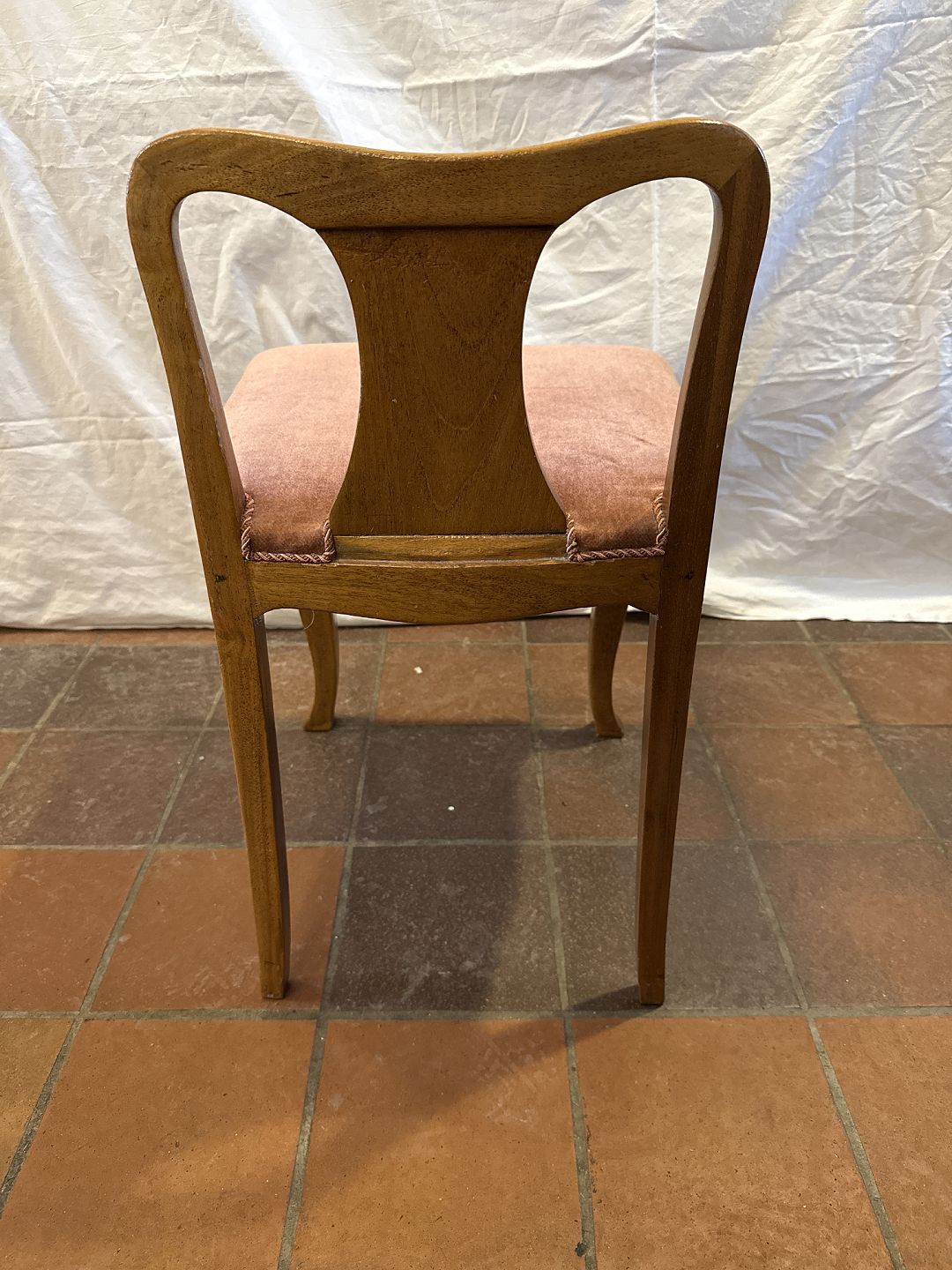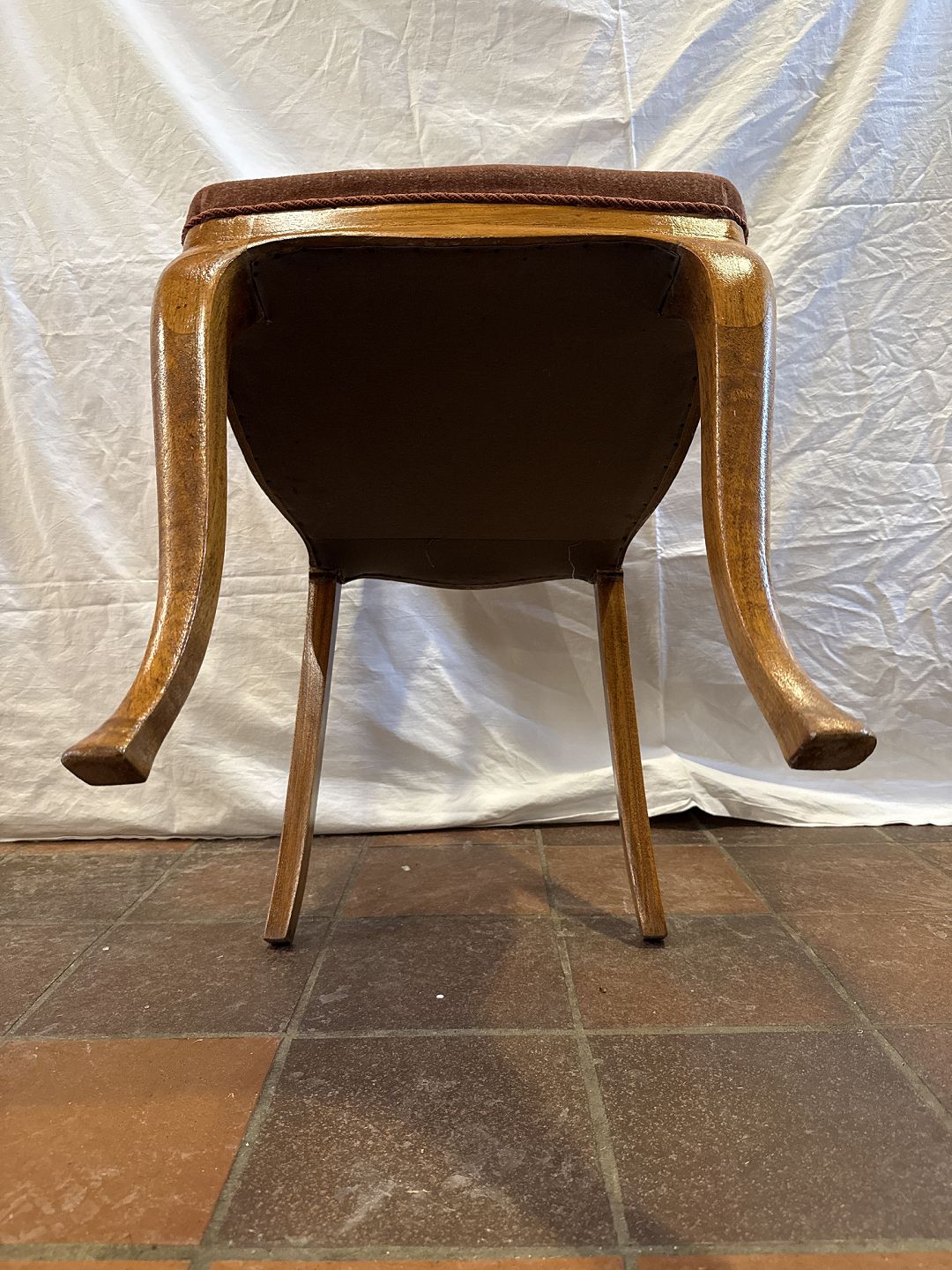 Ukendt formgiver lav rygget stol i lakeret mahogni m. sæde i velourstof.Fremstillet ca. 1920'erne.