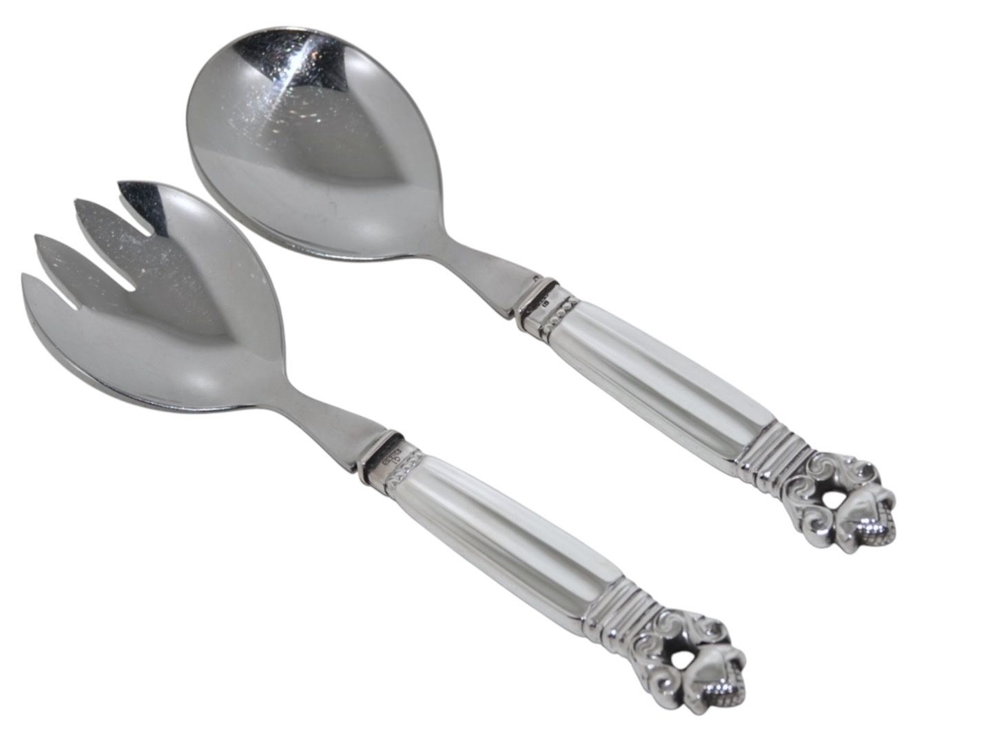 Georg Jensen Konge sølv og rustfrit stål, lille salatsæt.Sættet er produceret i 1927.