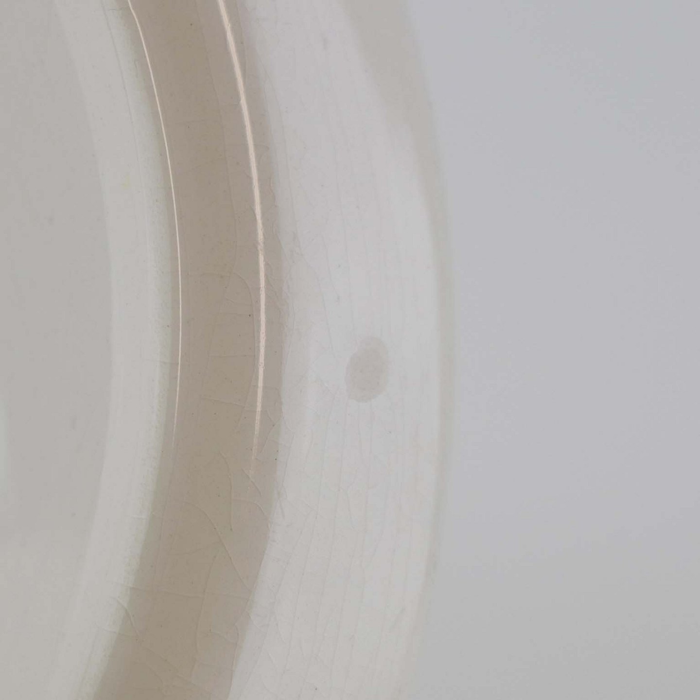 Fremstår med ujævnhed i glasuren og krakkeleringer i glasuren.
