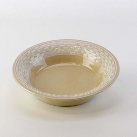 Sandfarvet fajancestel i stelform Viktoria II - Fletværk med dekoration af hvidt flet på gullig baggrund.