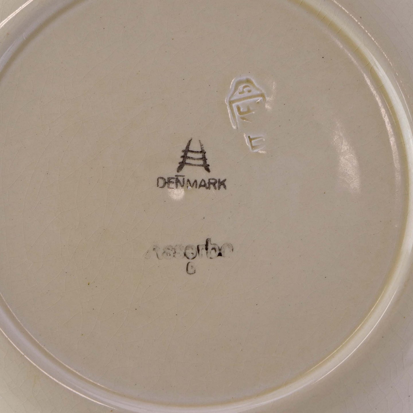 Lille dyb tallerken i fajance fra stellet Asserbo fremstillet i perioden 1933-1965Formgiver Nils Thorsson