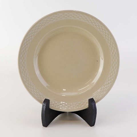 Sandfarvet fajancestel i stelform Viktoria II - Fletværk med dekoration af hvidt flet på gullig baggrund.