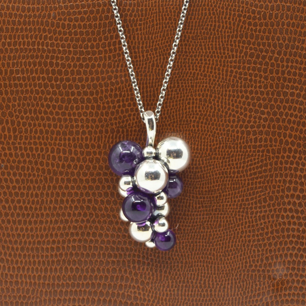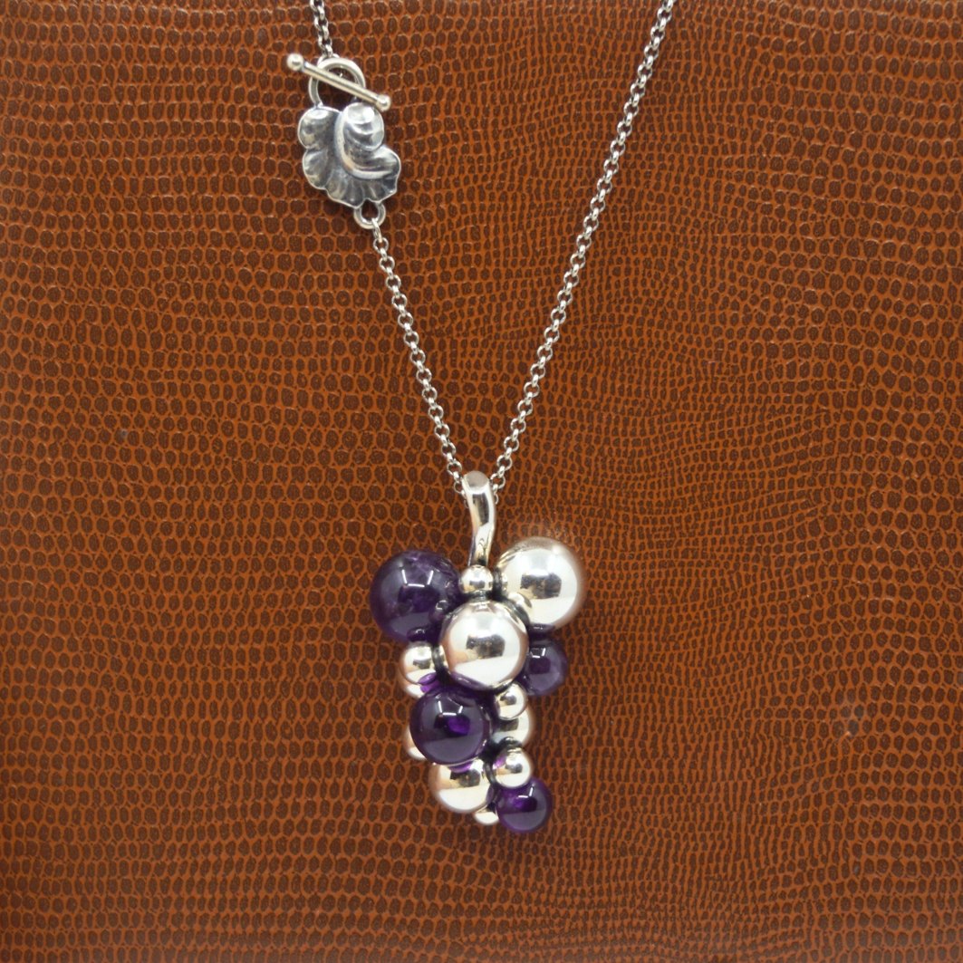 Georg Jensen; Moonlight Grapes halskæde i sterlingsølv med ametystKæde l. 60 cm.