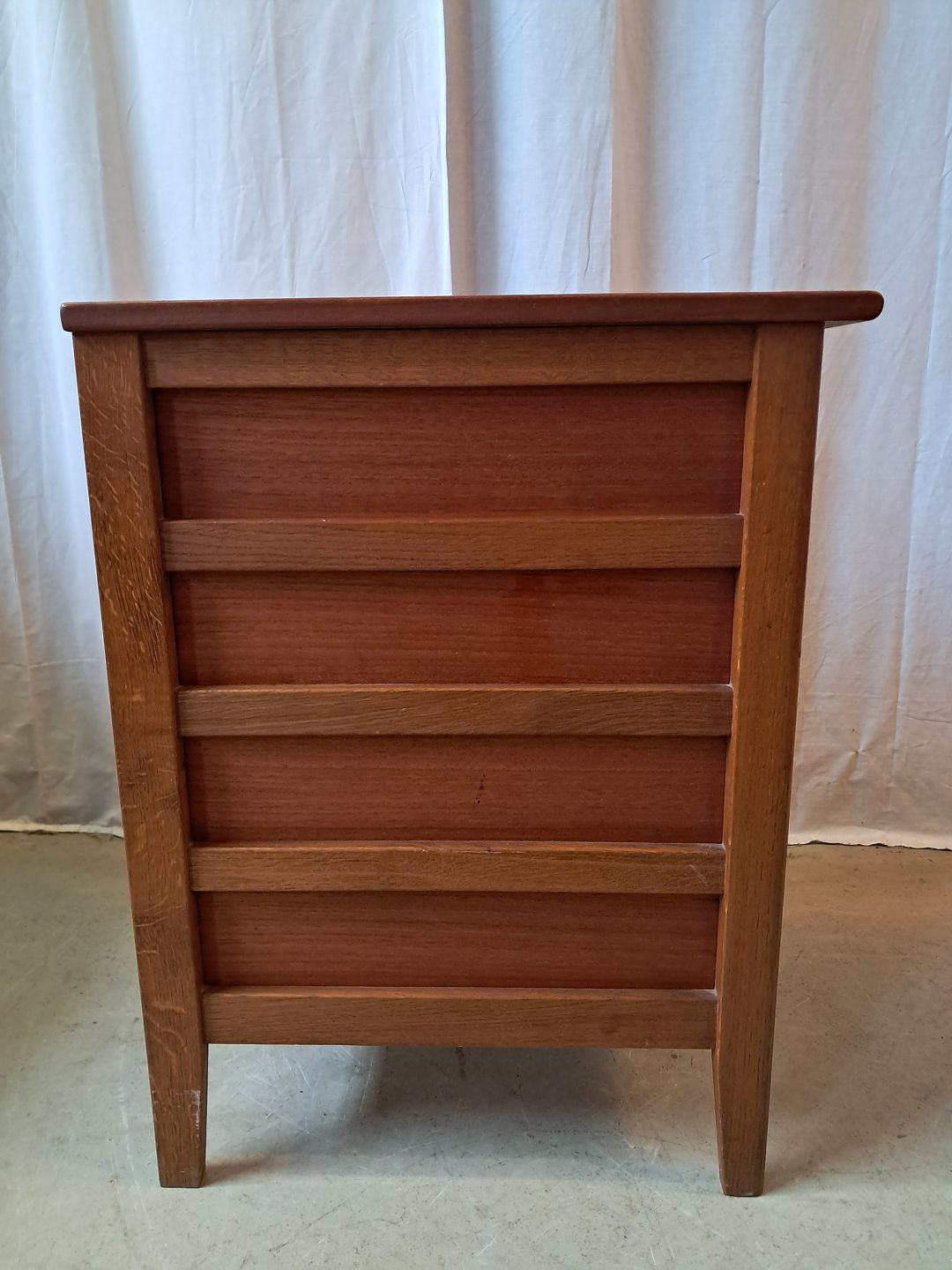 Kommode i massivt egetræ og fineret teaktræ, fra 19670erne.Den har brugsspor.