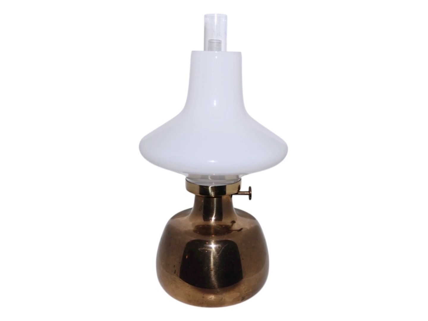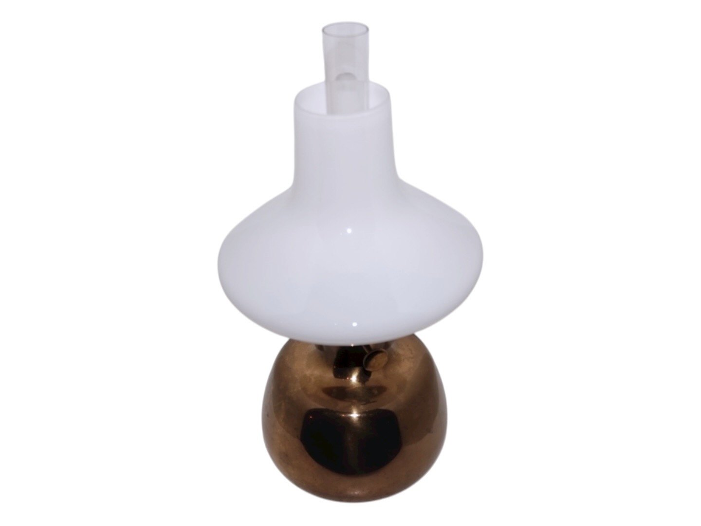 Henning KoppelPetronella petroleumslampe med hvid opalglas skærm fra Holmegaard.
