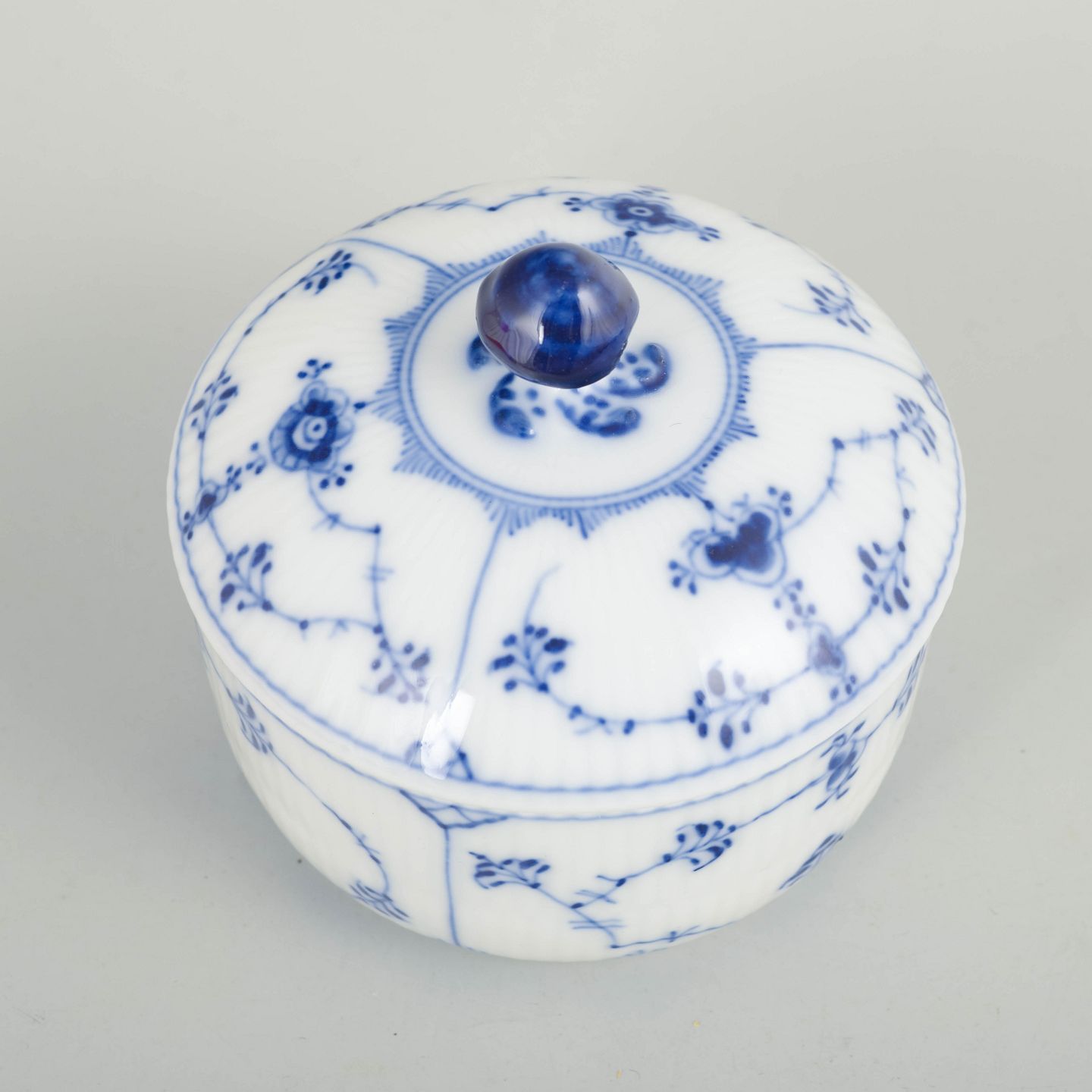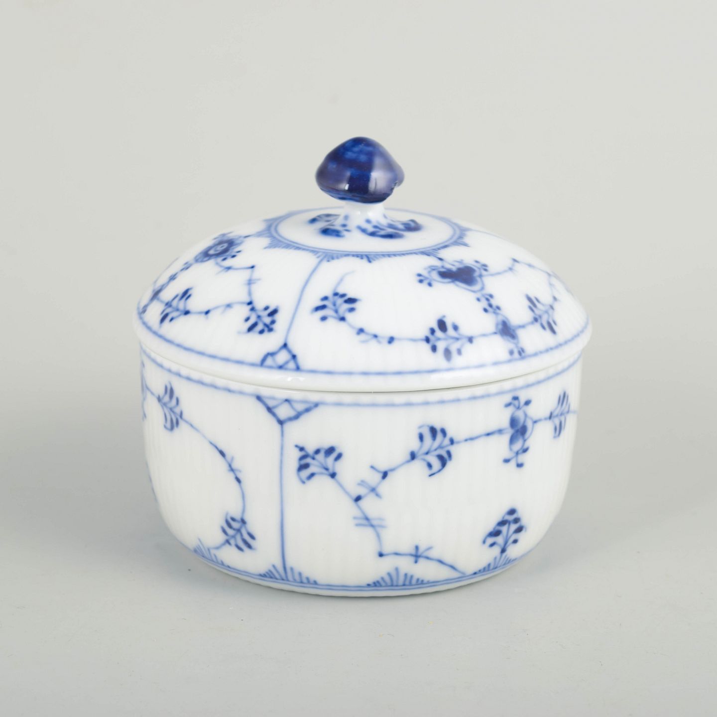 Royal Copenhagen Musselmalet riflet, lågskål.Lågskål i håndmalet porcelæn fra Musselmalet riflet med klassisk underglasurdekoration i koboltblå, riflede felter.