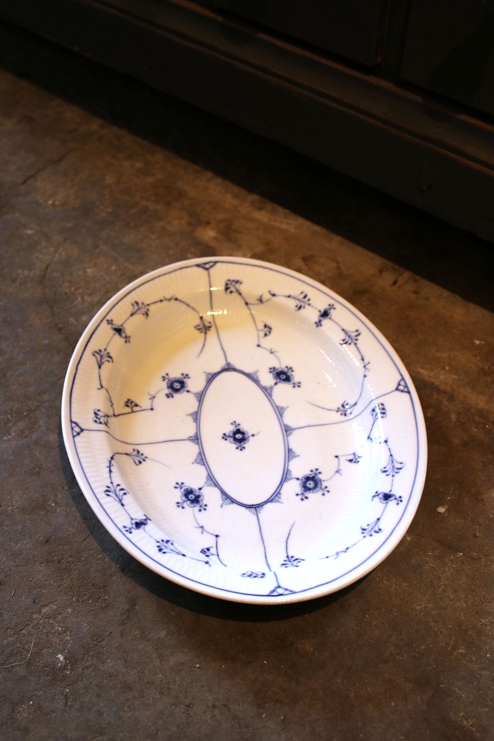 Royal Copenhagen Musselmalet Riflet ovalt fad.33,5x25,5cm. Dekorationsnummer: 1/98. 1.sort. fra 1923-28.