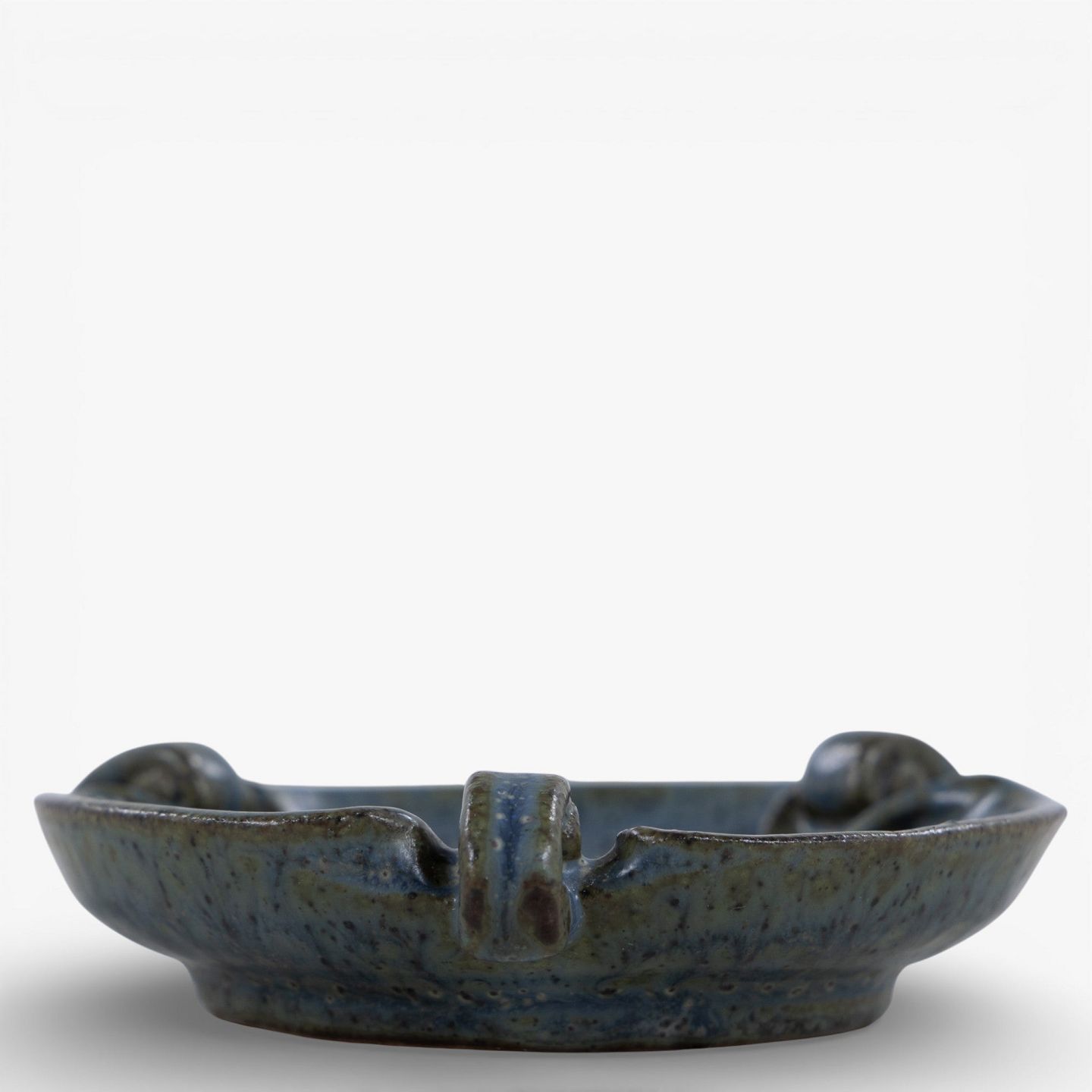 Lille fad i stentøj m. blågrøn glasur. Signeret.
