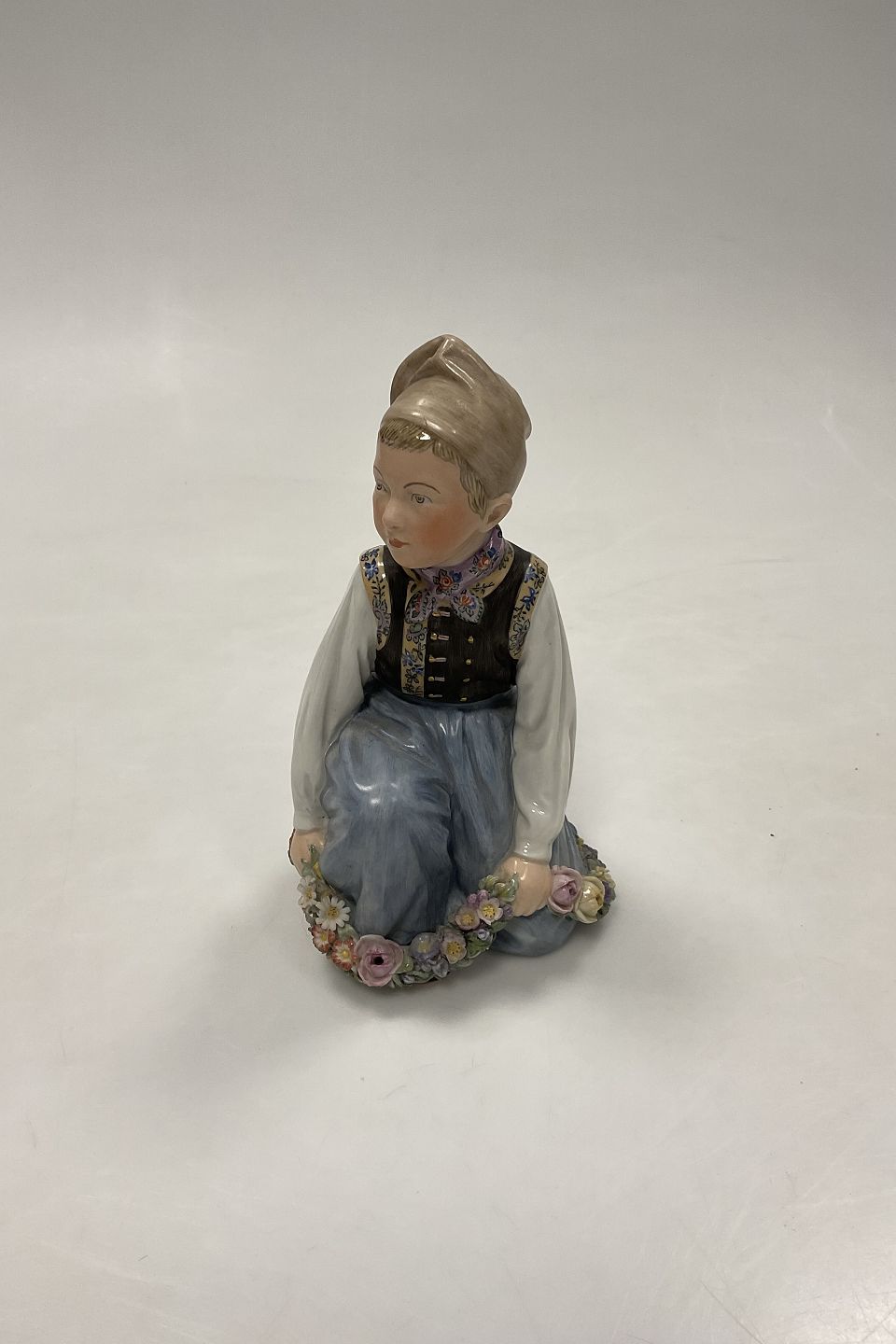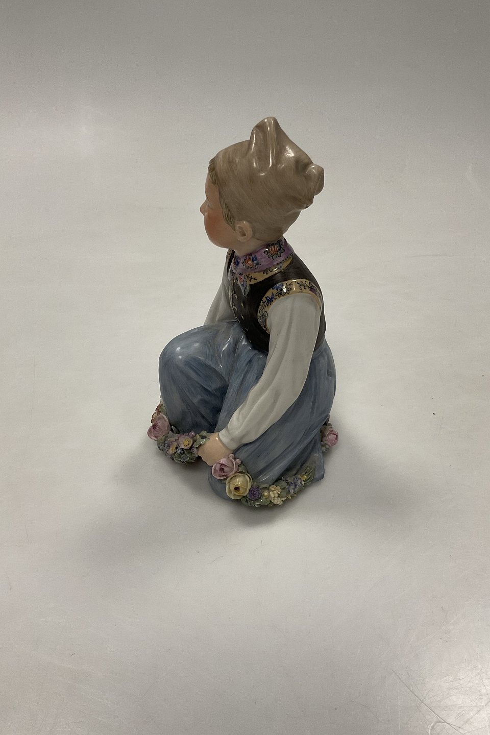 Royal Copenhagen Overglasur Figur Amager Dreng nr. 12414. Måler 15cm(5 29/32 in) har nogle små afslag på blomster.Se venligst detalje foto.Lager: 1