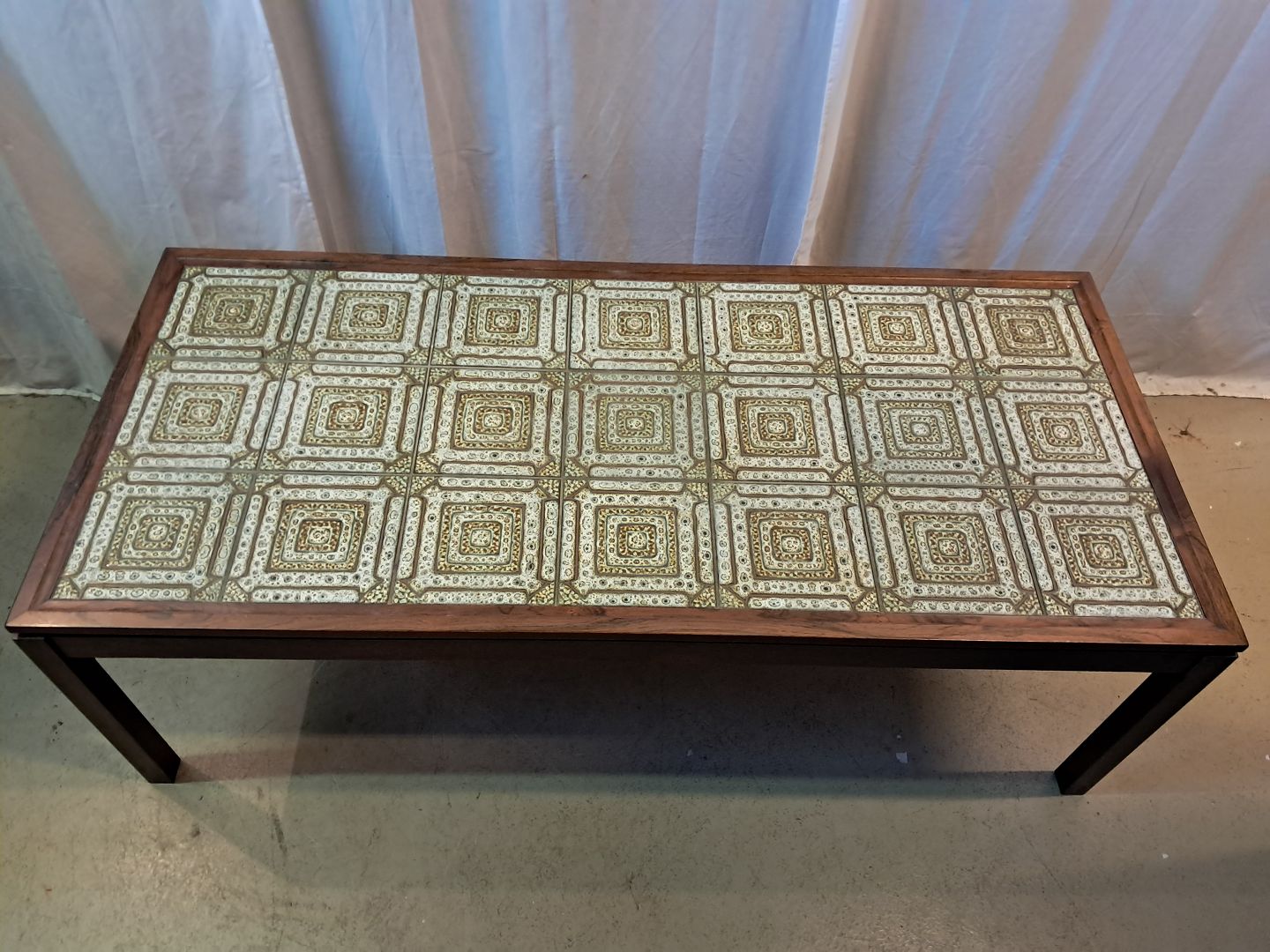 Sofabord i palisander med kakler, fra 1960erne.Det har brugsspor.