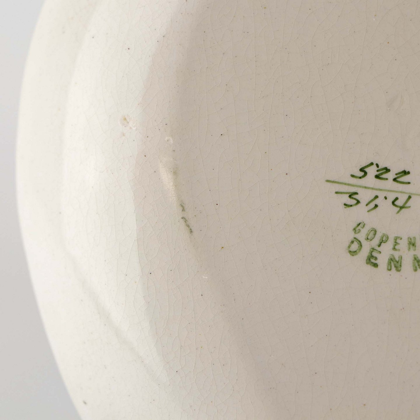 Fremstår med krakkeleringer i glasuren, brugsspor under bund.