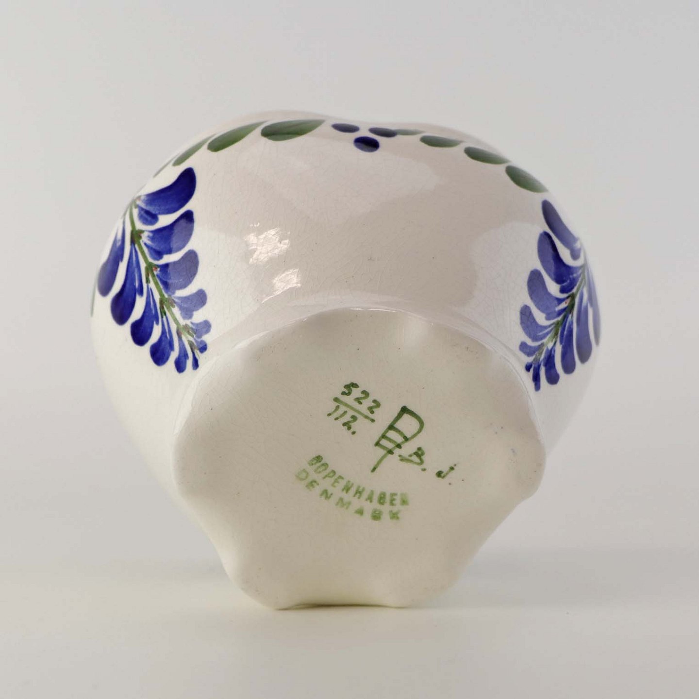 Lav trekantet vase i fajance fra stellet Blåregn. Stellet er fremstillet i perioden år 1903-1933. Nr. 522/112Formgiver Christian Joachim