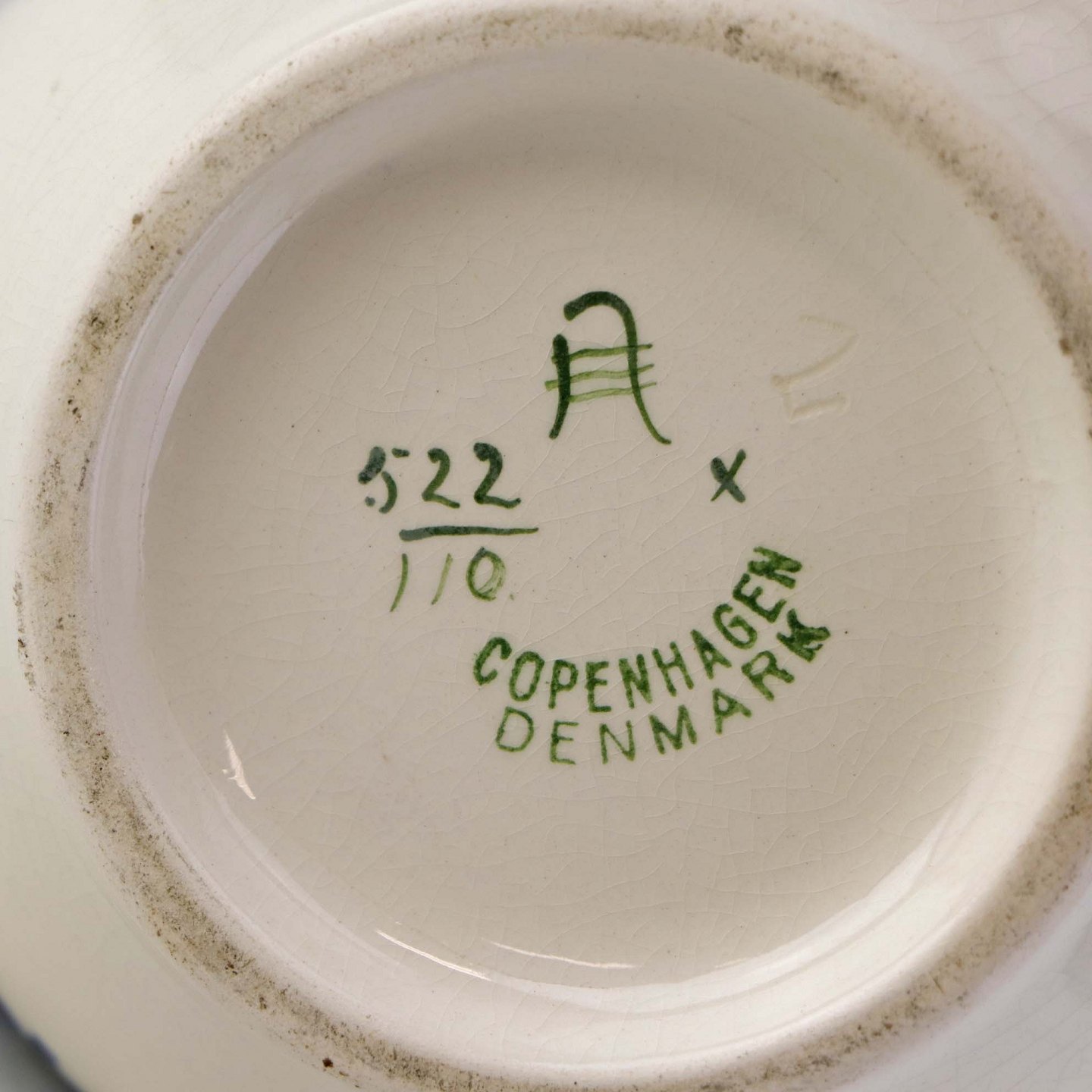 Fremstår med krakkeleringer i glasuren, indvendige spor af kalk samt minimale pletter under glasuren nær bunden.