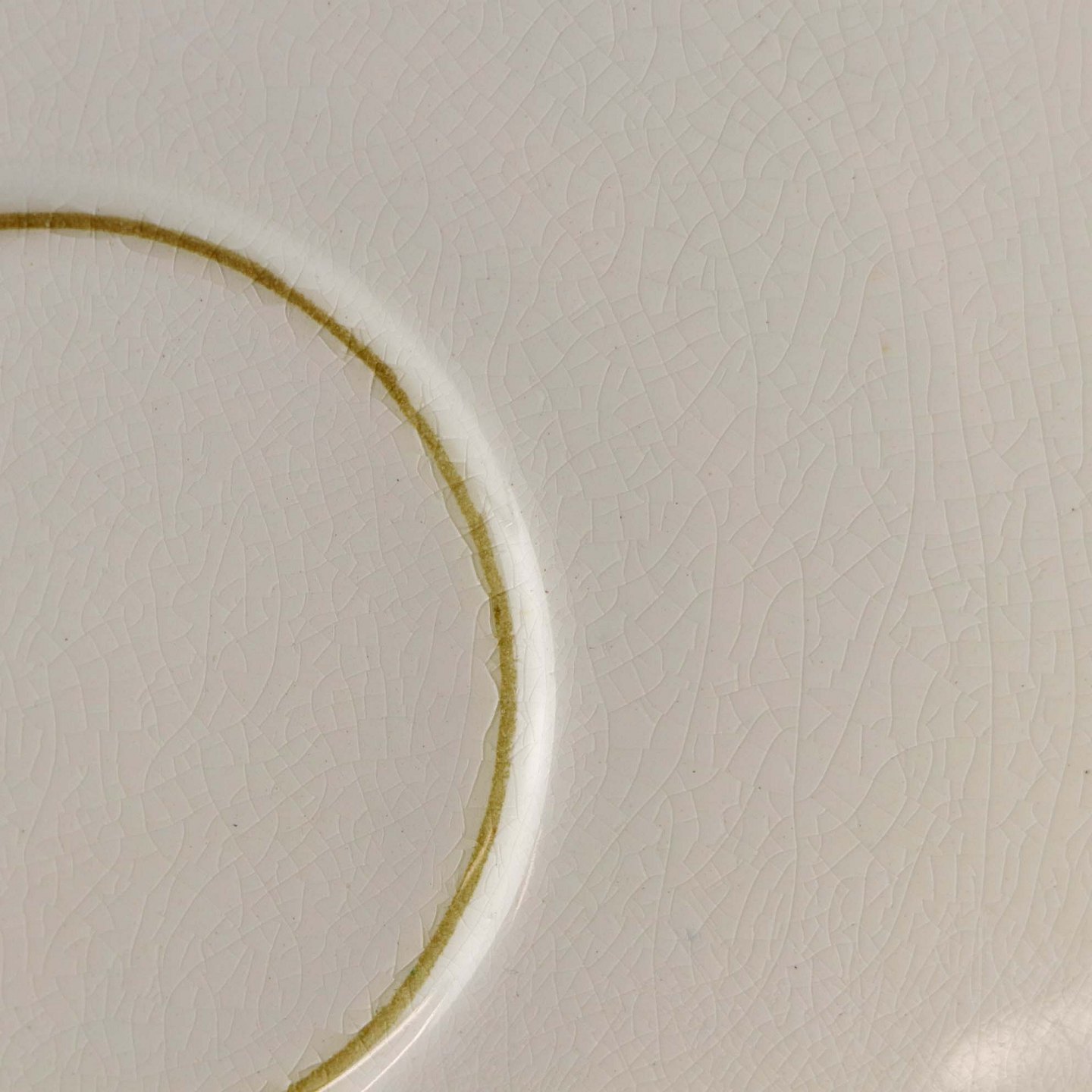 Fremstår med krakkeleringer i glasuren, mindre nøk i glasuren ved topkanten af koppen.