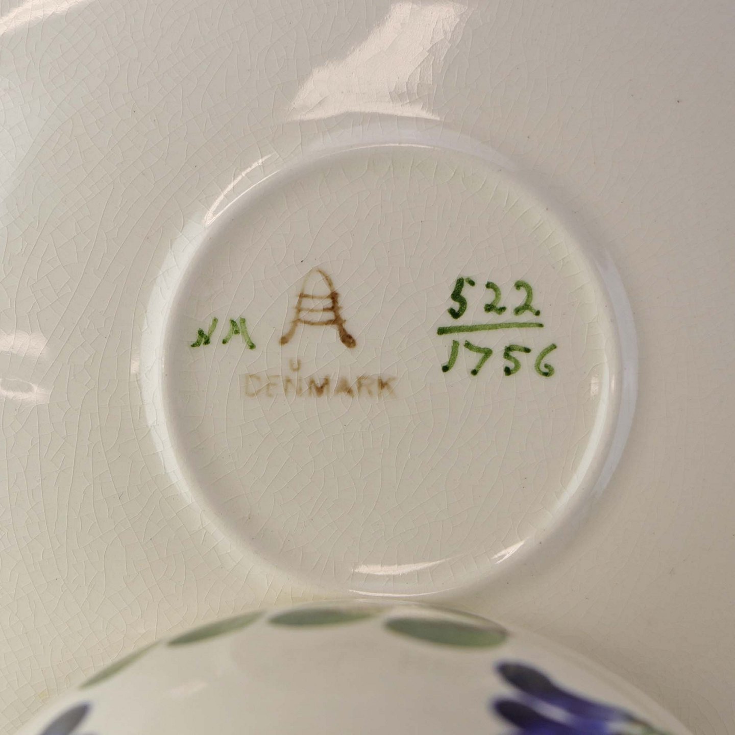 Tekop med underkop i fajance fra stellet Blåregn. Stellet er fremstillet i perioden år 1903-1933. Nr. 522/1756Formgiver Christian Joachim