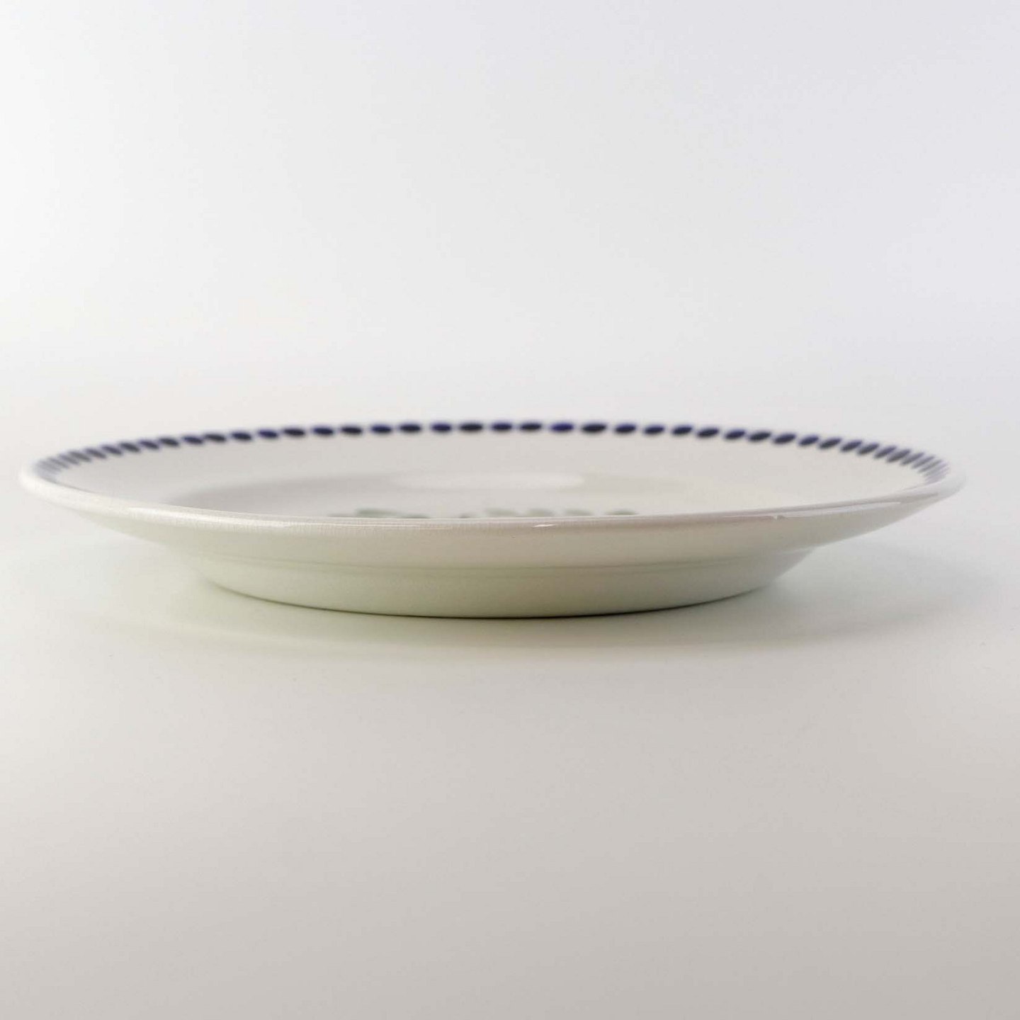 Flad frokosttallerken i fajance fra stellet Blåregn. Stellet er fremstillet i perioden år 1903-1933. Nr. 522/1425