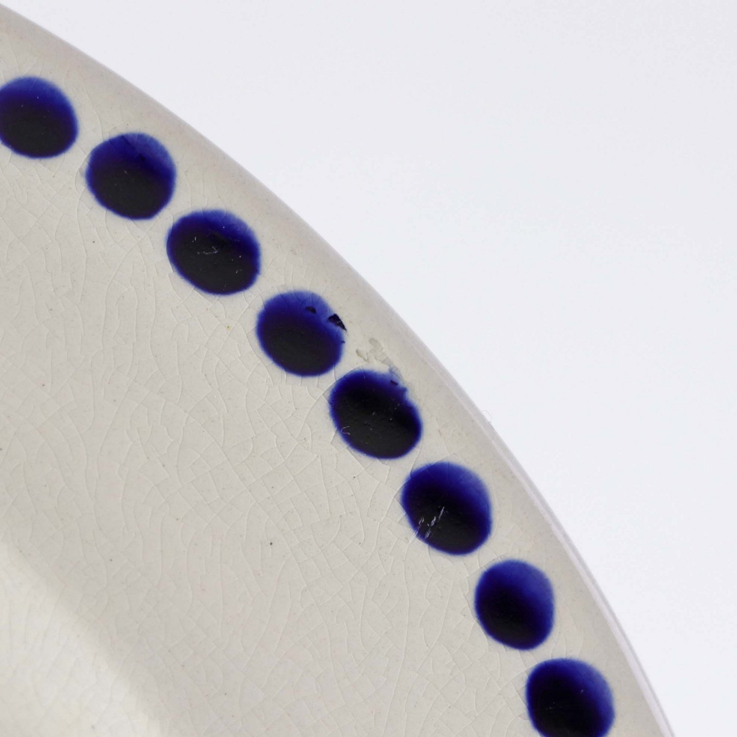 Fremstår med krakkeleringer i glasuren og mindre brugsspor på dekorationen.