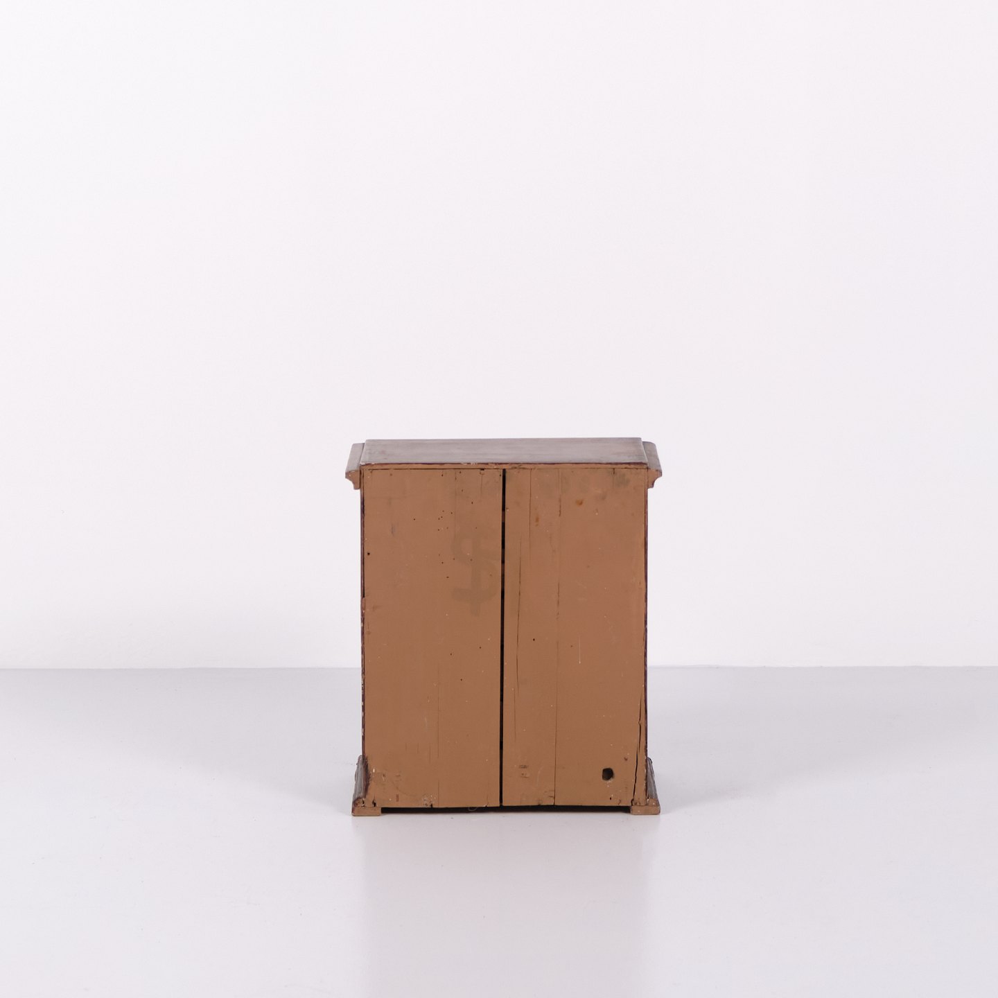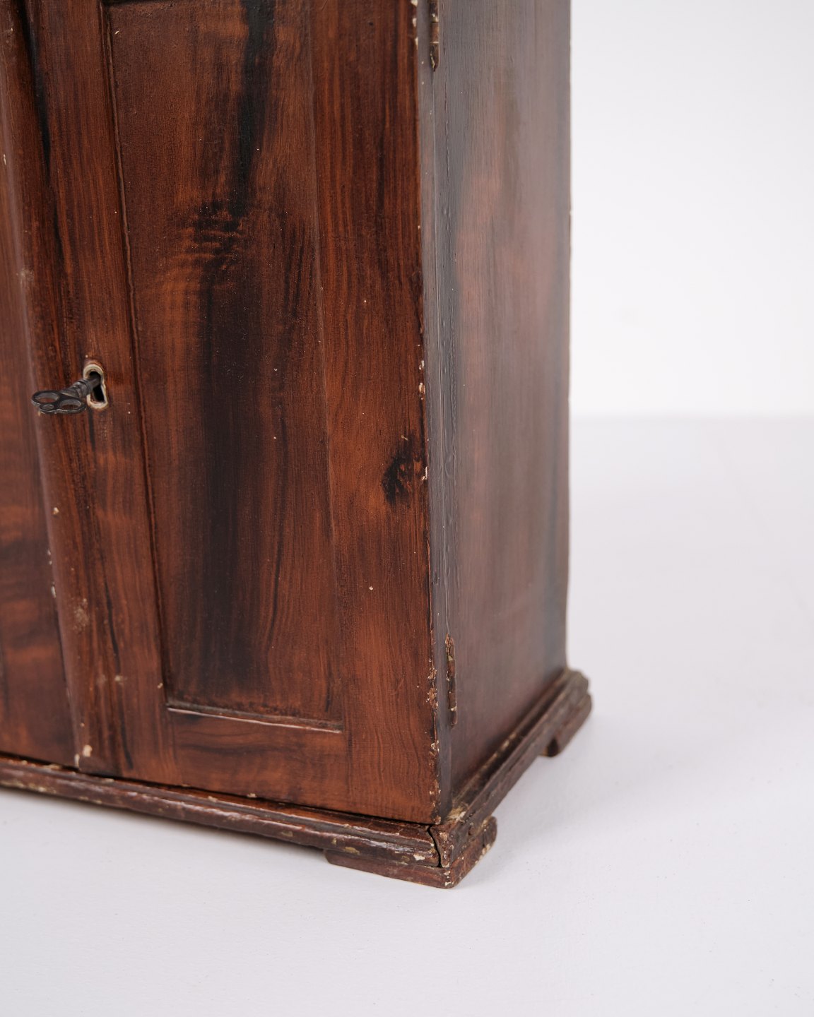 Antikt miniaturemøbel i åremålet fyrretræ med håndsmedede beslag fra 1840’erne. Unikt og dekorativt samlerobjekt med historisk karakter.— Oprindelse: Europa