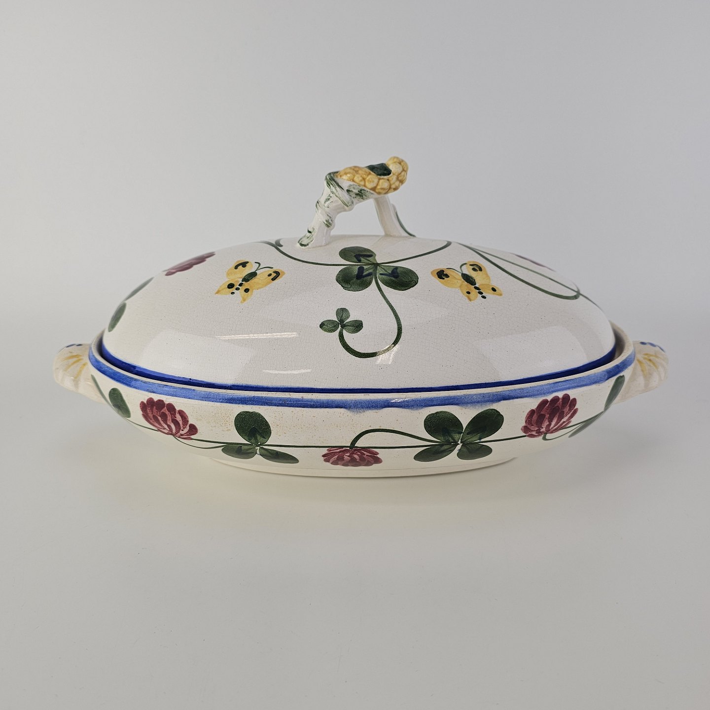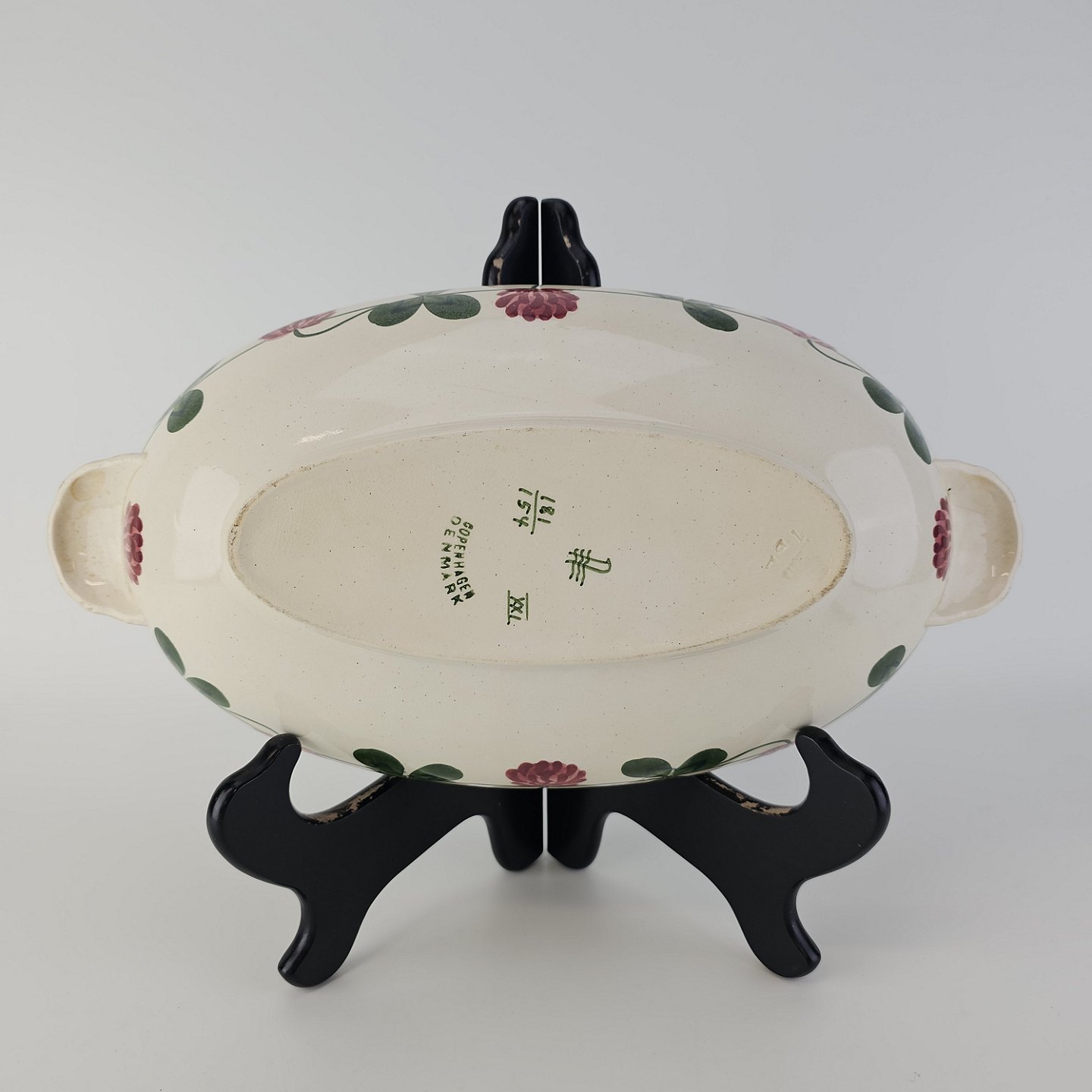 Lågfad i kunstfajance fra stellet Kløver. Nr. 181/154Formgiver H. Slott-Møller år 1904