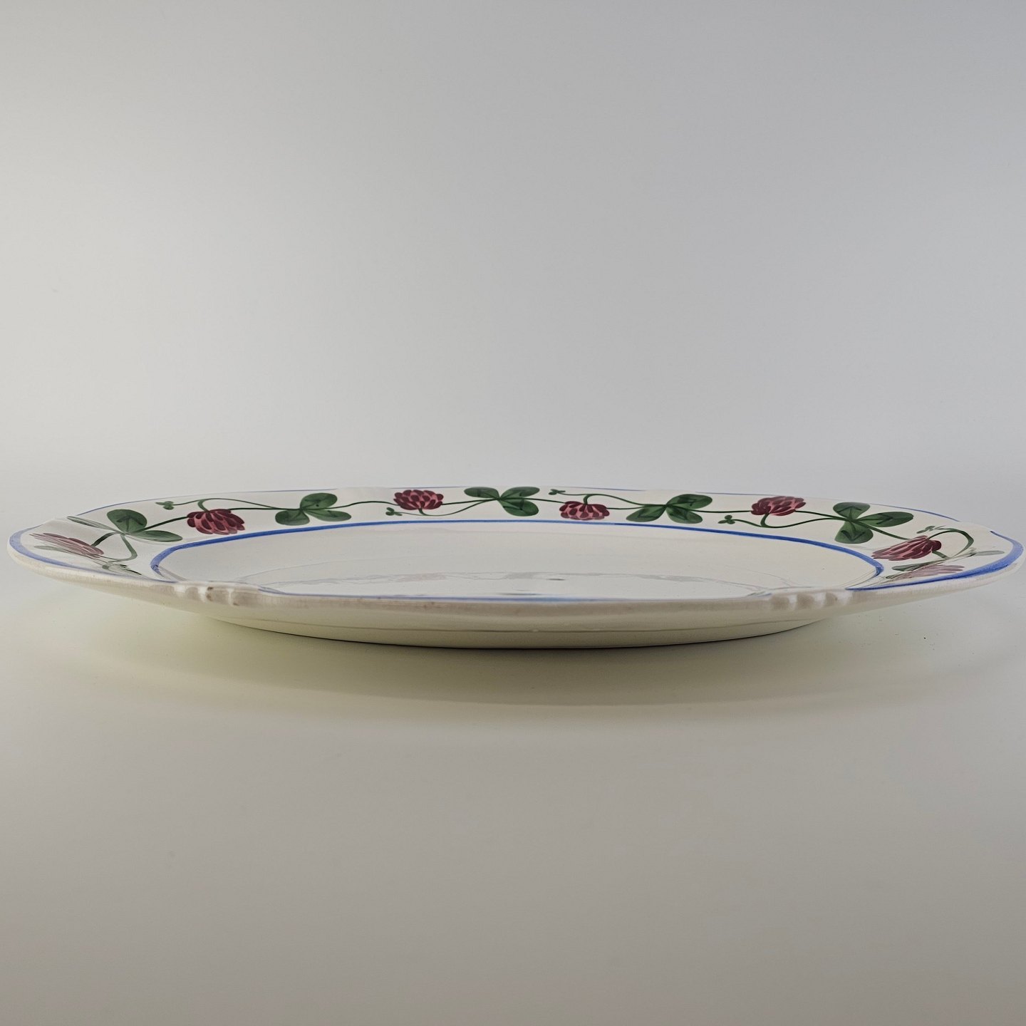 Ovalt fad i kunstfajance fra stellet Kløver. Nr. 181/285Formgiver H. Slott-Møller år 1904