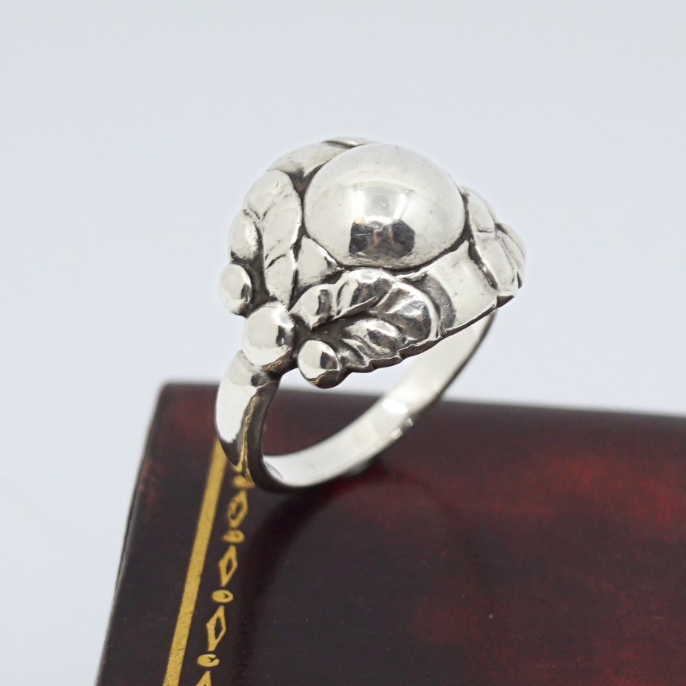 Georg Jensen; Ring af sterling sølv prydet med sølv sten.Dessin nr. 11B. Fra 1930erne.