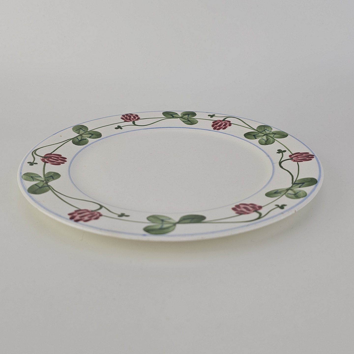 Tallerken i kunstfajance fra stellet Kløver. Nr. 181/778Formgiver H. Slott-Møller år 1904
