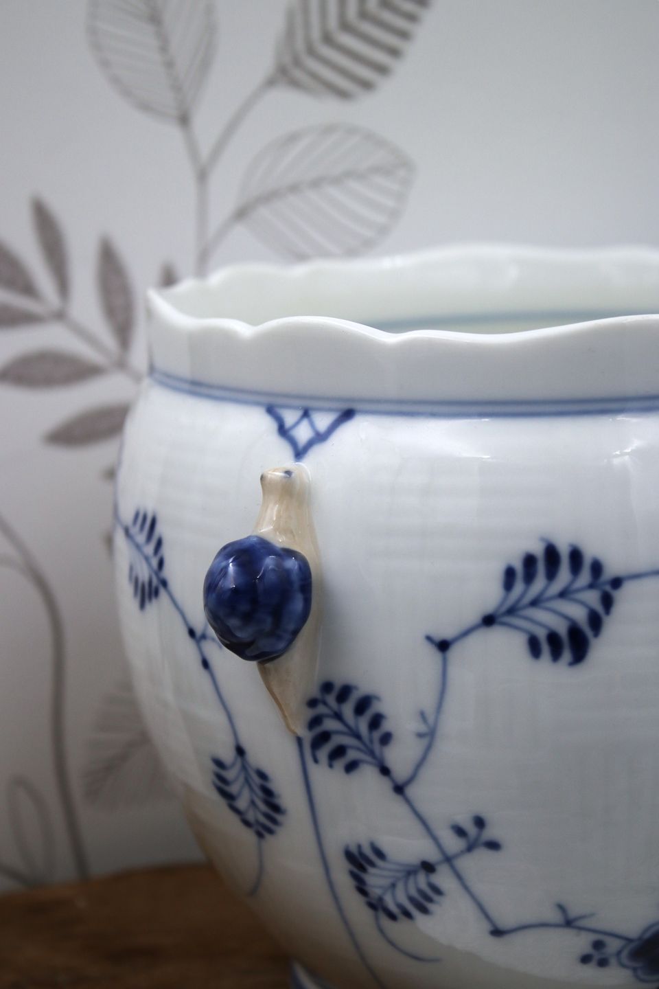 Sjælden Musselmalet Riflet blomsterpotteskjuler fra Royal Copenhagen.Dekorationsnummer: 1/125. 1.sort. 1898-1923.