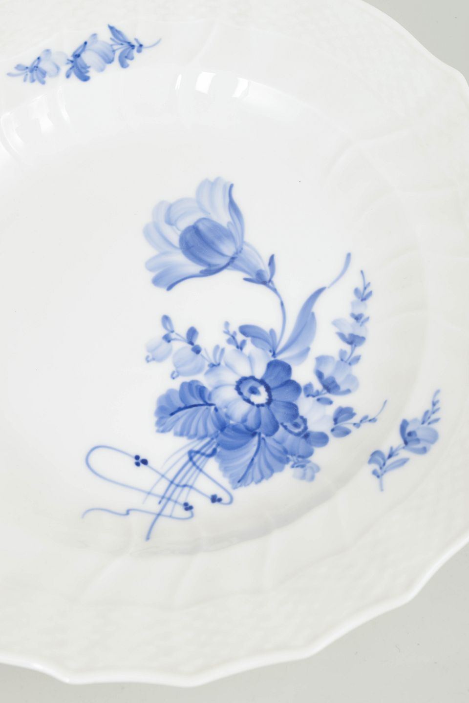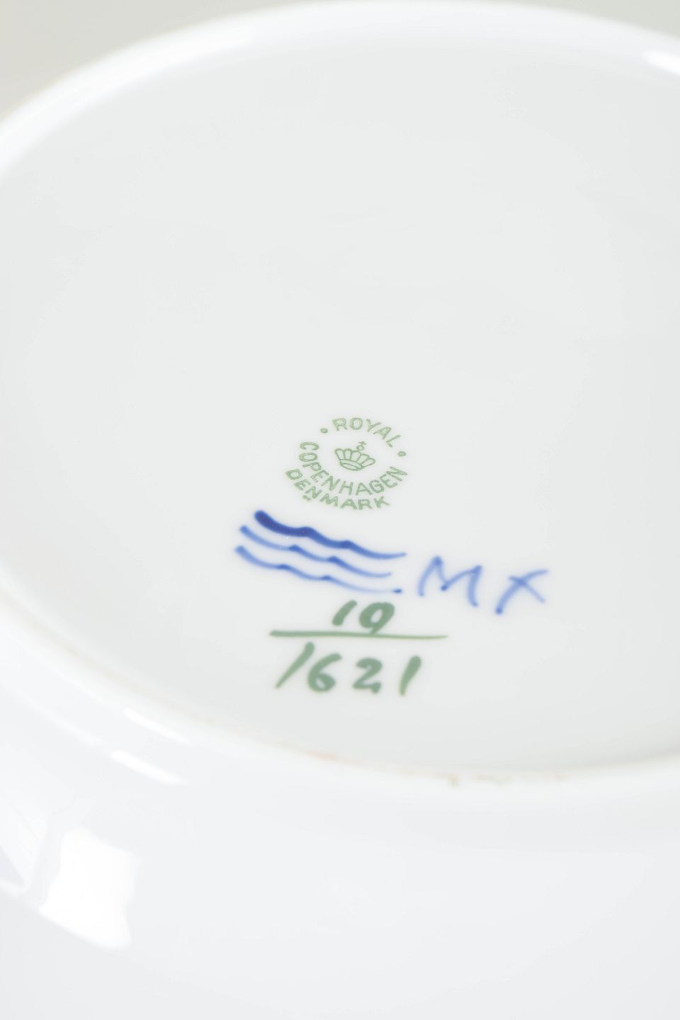 Royal Copenhagen blev grundlagt i 1775 i København under kongelig bevilling. Fabrikken er internationalt anerkendt for sit håndmalede porcelæn og høje kunstneriske kvalitet. Blå Blomst Svejfet blev introduceret i 1700-tallet og videreført gennem det 20. århundrede og er kendetegnet ved sin naturalistiske blomsterdekoration og elegante svejfede form.