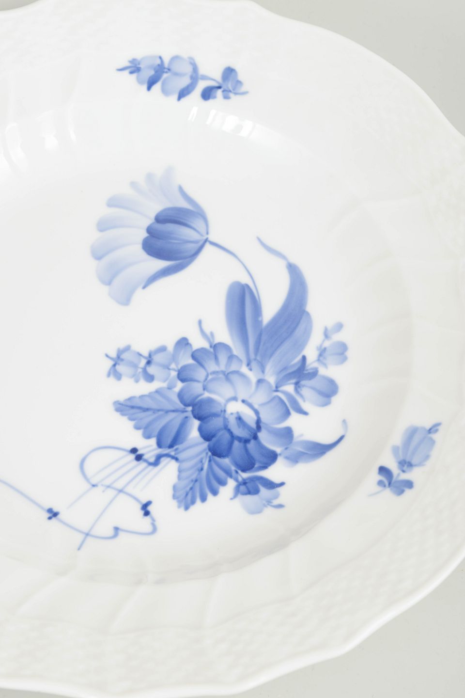 Royal Copenhagen blev grundlagt i 1775 i København under kongelig bevilling. Fabrikken er internationalt anerkendt for sit håndmalede porcelæn og høje kunstneriske kvalitet. Blå Blomst Svejfet blev introduceret i 1700-tallet og videreført gennem det 20. århundrede og er kendetegnet ved sin naturalistiske blomsterdekoration og elegante svejfede form.