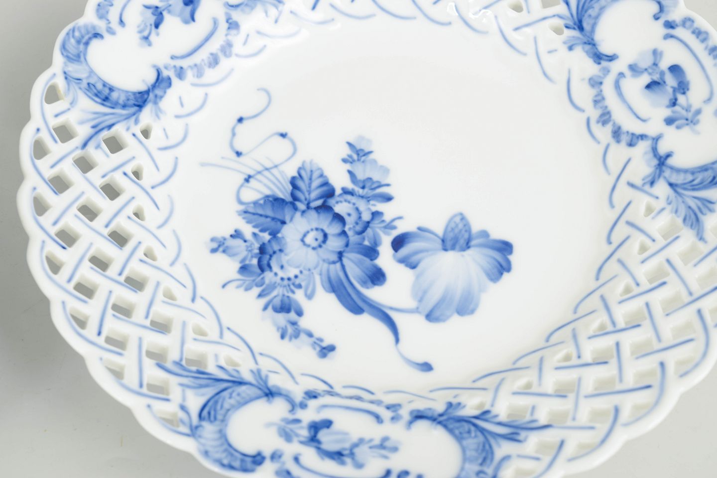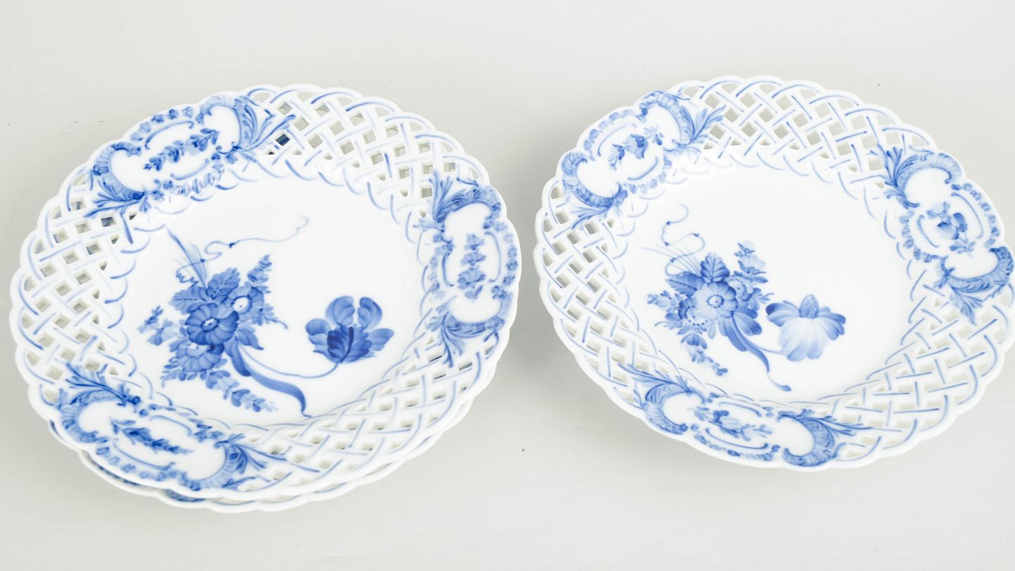 Royal Copenhagen blev grundlagt i 1775 i København under kongelig bevilling. Fabrikken er internationalt anerkendt for sit håndmalede porcelæn og høje kunstneriske kvalitet. Blå Blomst blev introduceret i 1700-tallet og videreført gennem det 20. århundrede og er kendetegnet ved sin naturalistiske blomsterdekoration og karakteristiske gennembrudte rand.