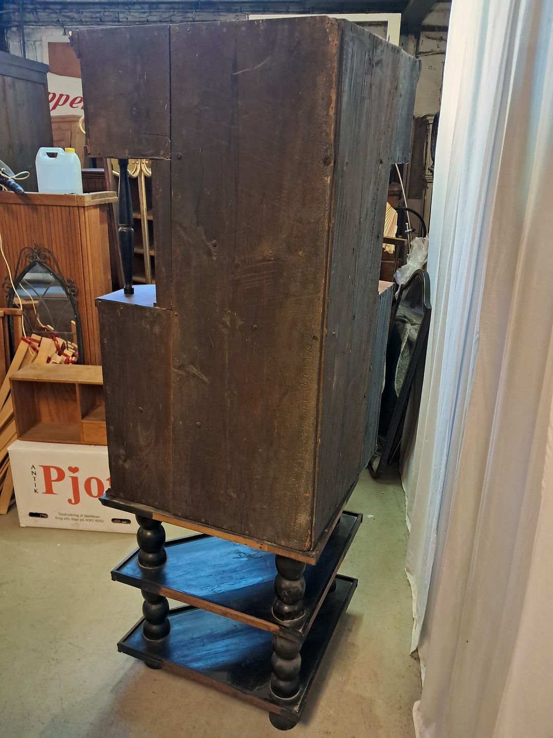 Hjørneskab i ege og elmetræ, det har 200 års jubilæumDet har brugsspor.