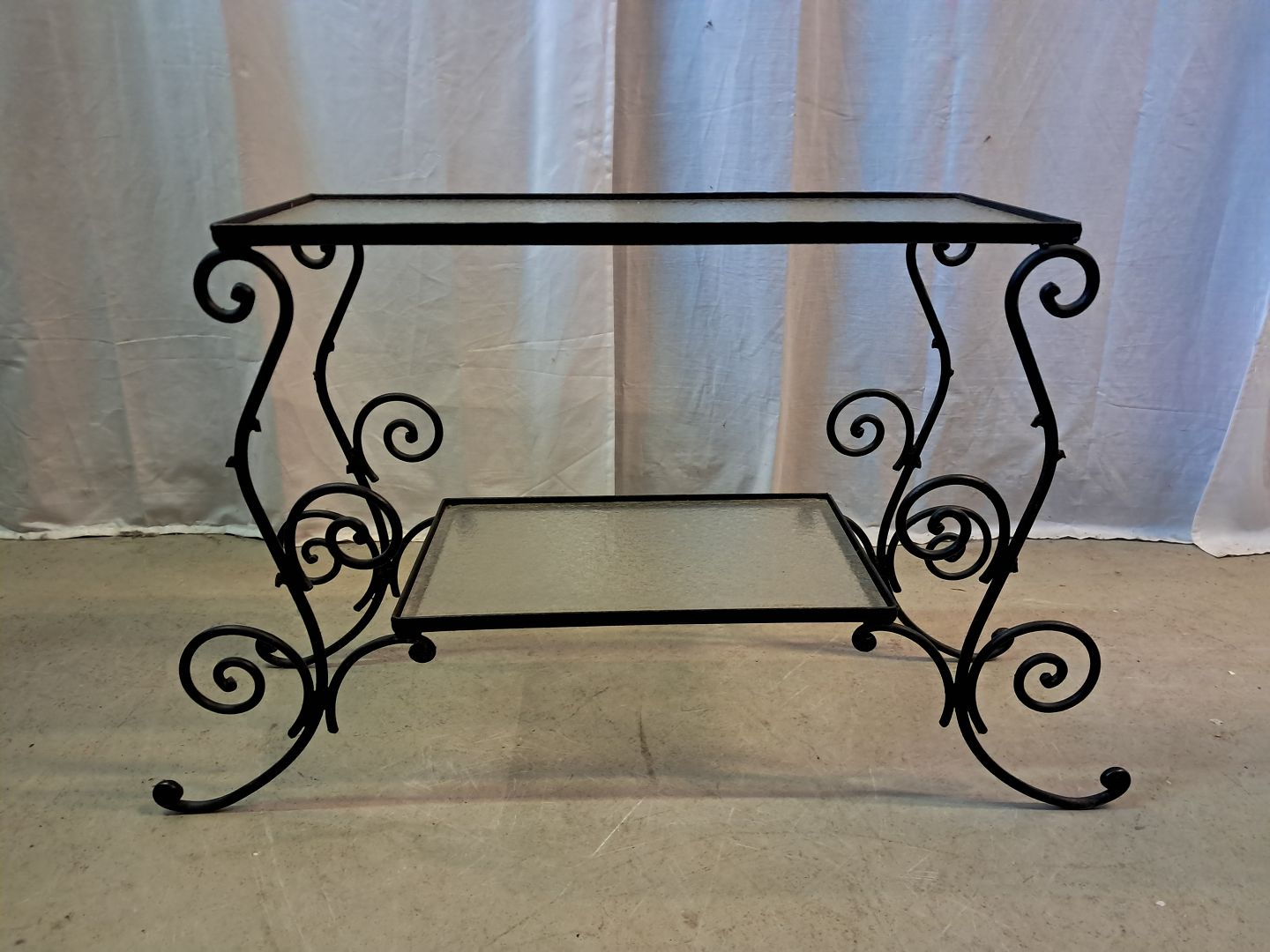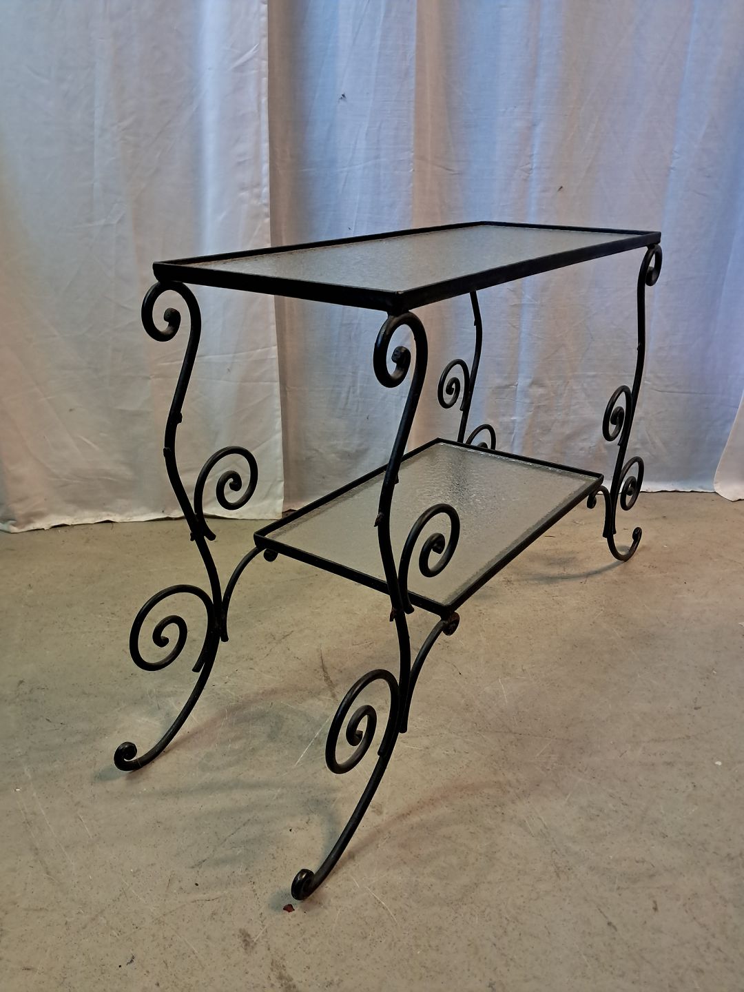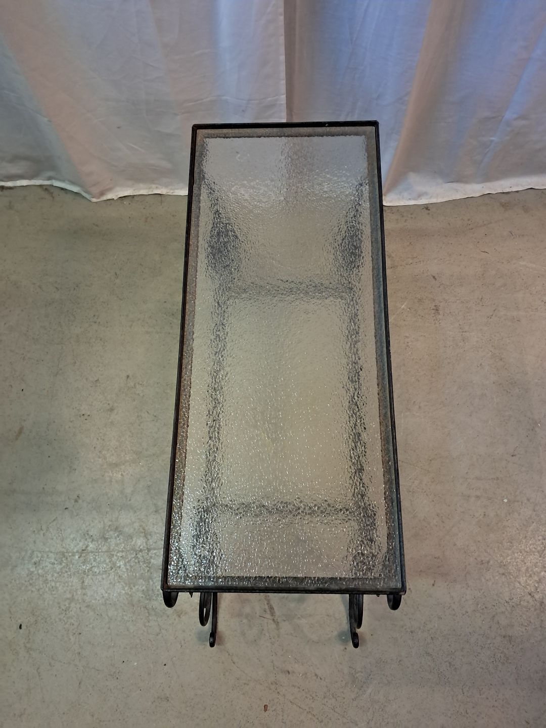 Plantebord i malet metal med glasplader, fra 1940erne.Det har brugsspor.