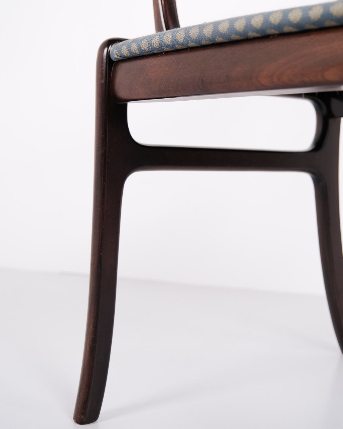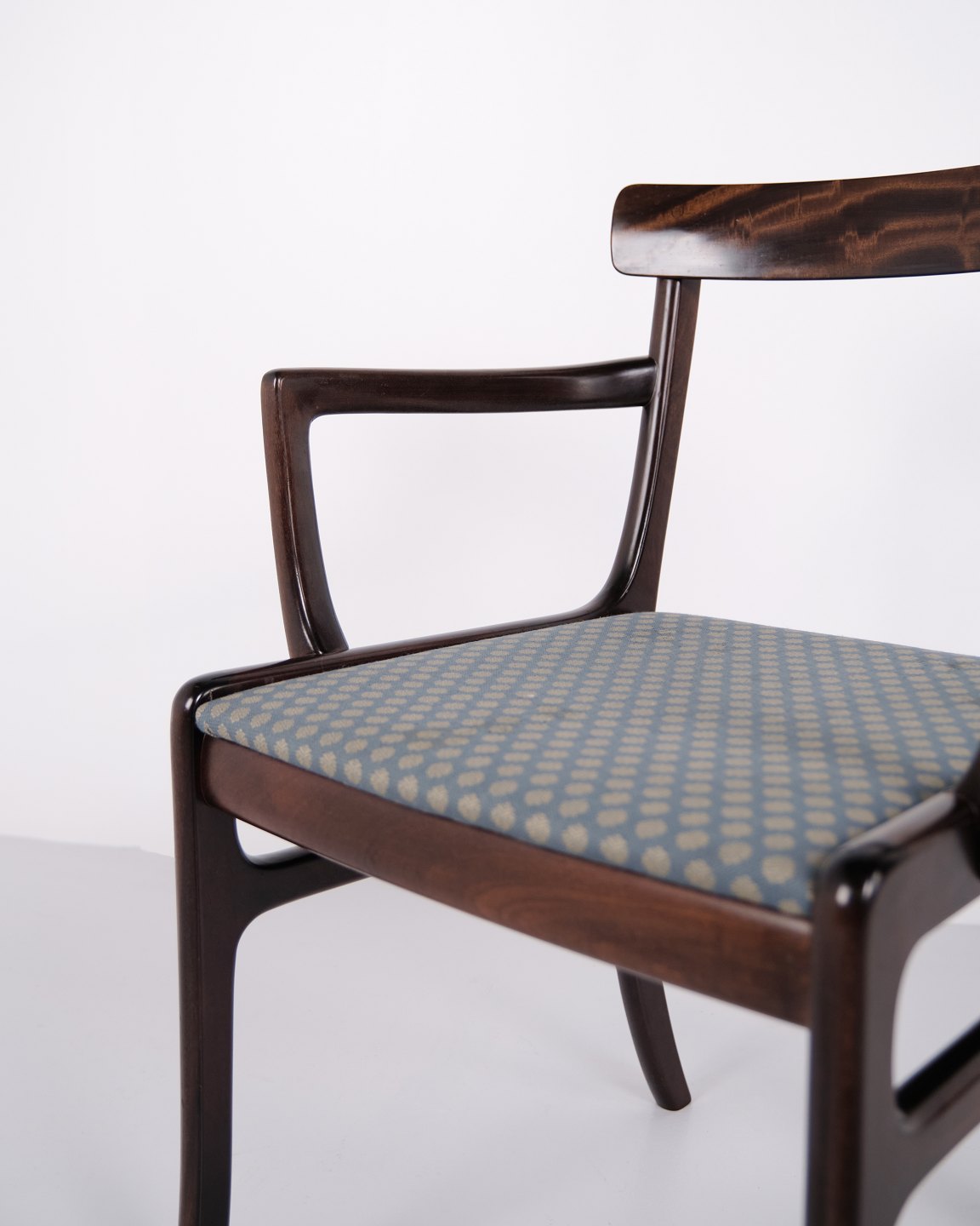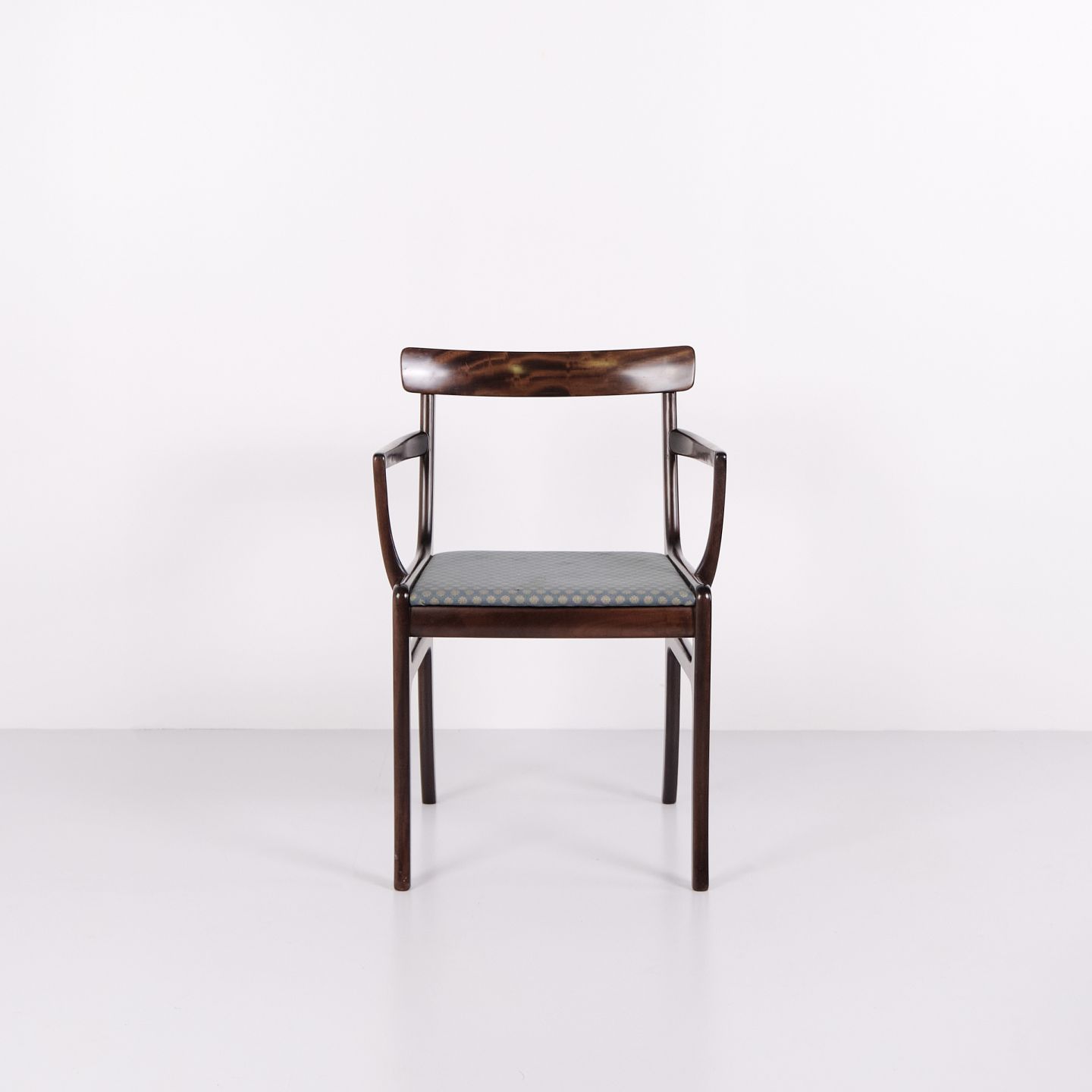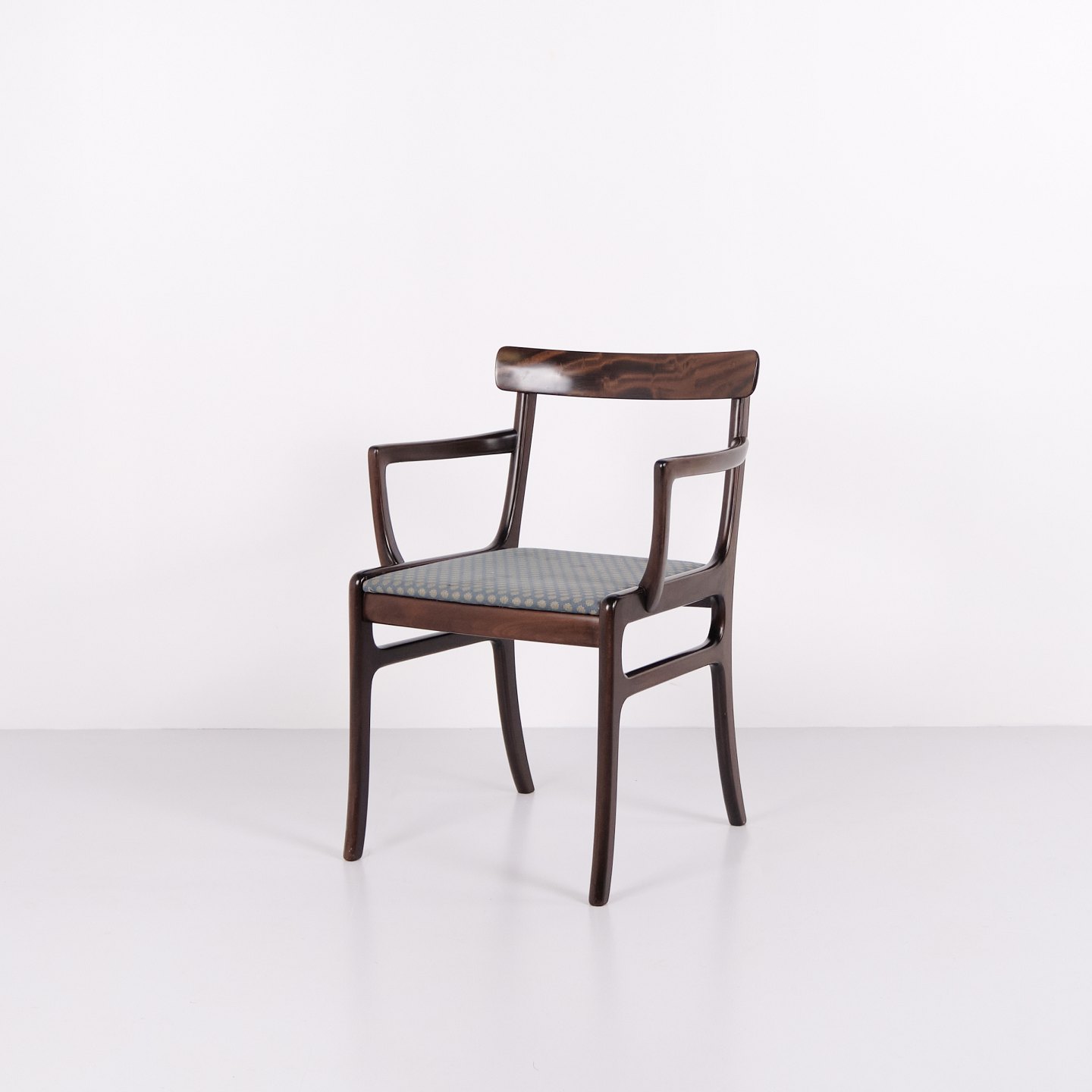 Armstol fra serien Rungstedlund formgivet af Ole Wanscher og produceret hos Poul Jeppesen Møbelfabrik i Danmark i 1950’erne. Stolen er udført i et klassisk og velafbalanceret formsprog, hvor proportioner og snedkerarbejde afspejler den danske designtradition fra midten af det 20. århundrede.Rungstedlund-serien er blandt Ole Wanschers kendte møbelserier og viser hans inspiration fra historiske møbeltyper, som han forenklede og tilpassede en moderne skandinavisk stil. Resultatet er en stol med et let og elegant udtryk, der kombinerer komfort med høj håndværksmæssig kvalitet.