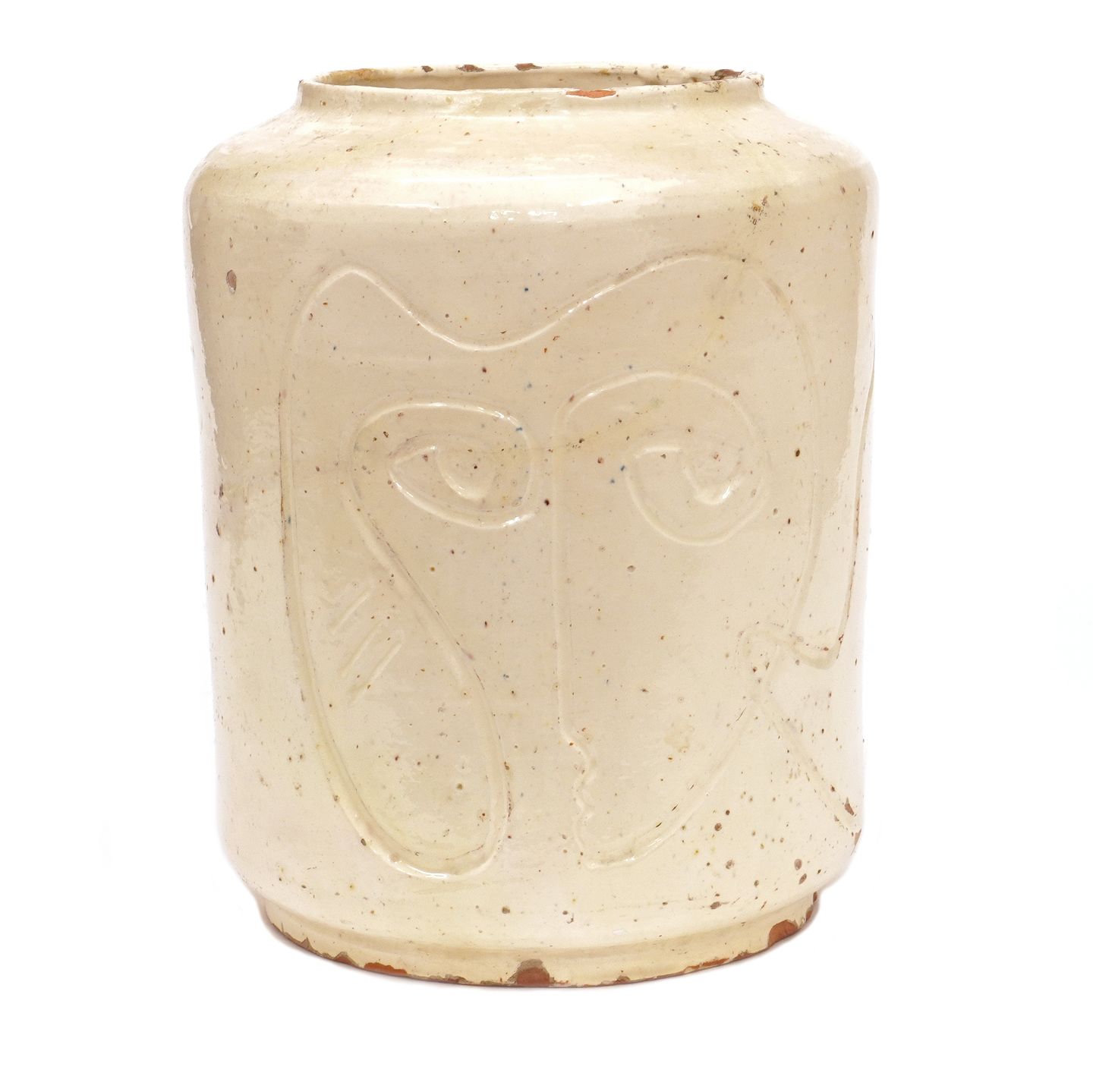 Asger Jorn keramik. Asger Jorn, 1914-73, vase i lertøj med lys glasur og dekorationerH: 26cm. D: 21cm