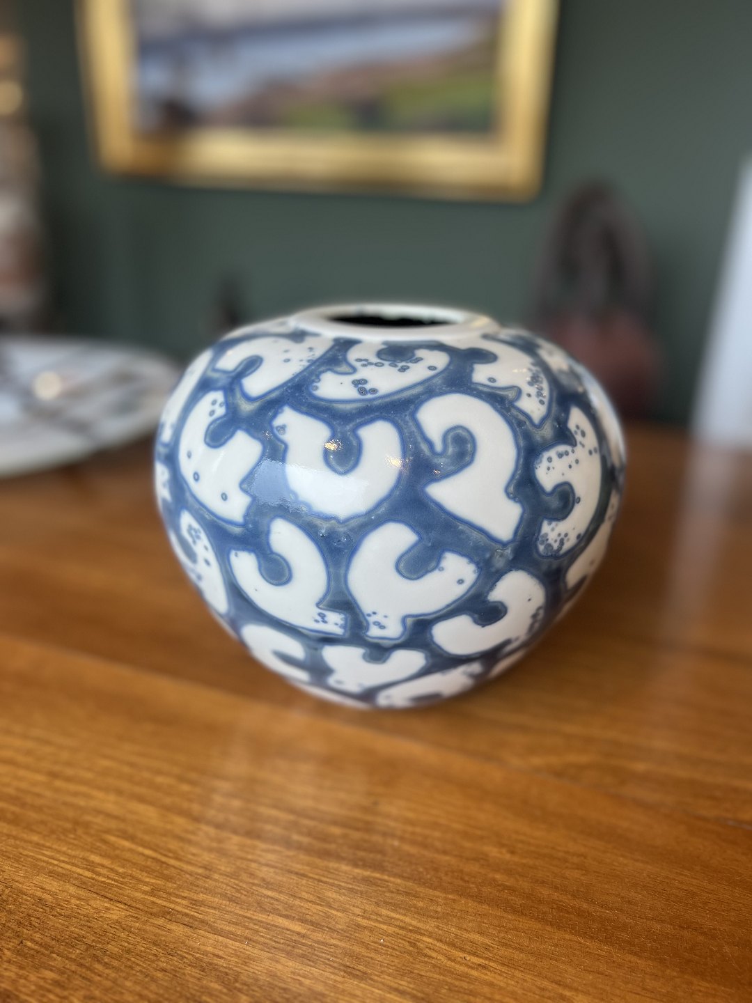 Per Weiss vasePer Weiss, 1953-2023, vase i stentøj med blå glasur og geometrisk mønster