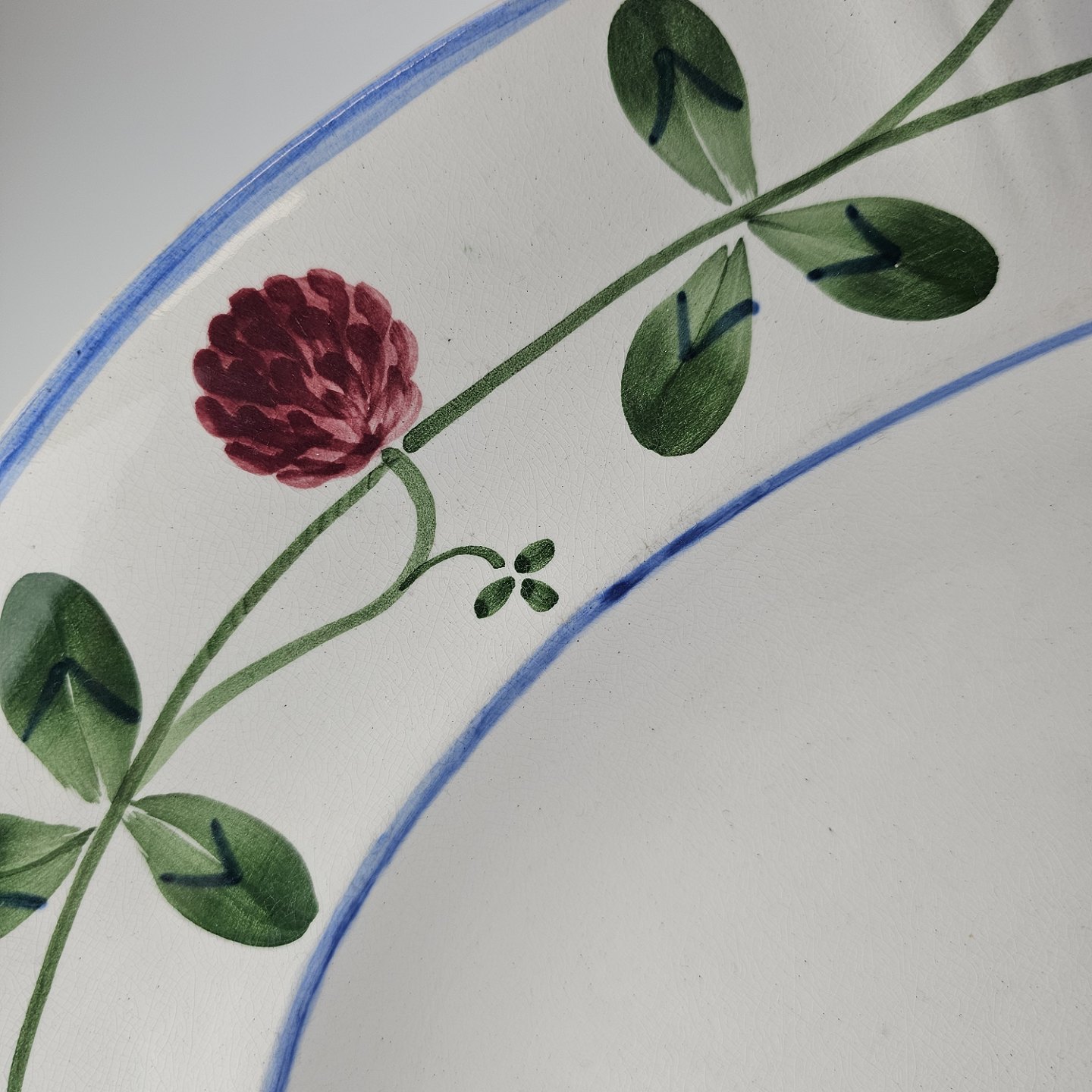Kløver er fajancestel med motiv af rødkløver på lys baggrund.