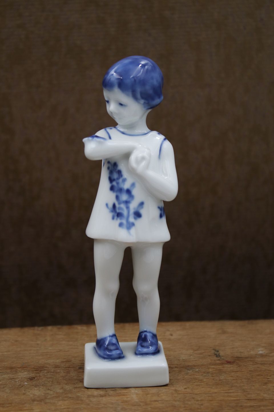 Royal Copenhagen Blå Blomst porcelænsfigur af lille pige med sommerfugl på armen. H: 15cm.Dekorationsnummer: 10/4795. 1.sort.