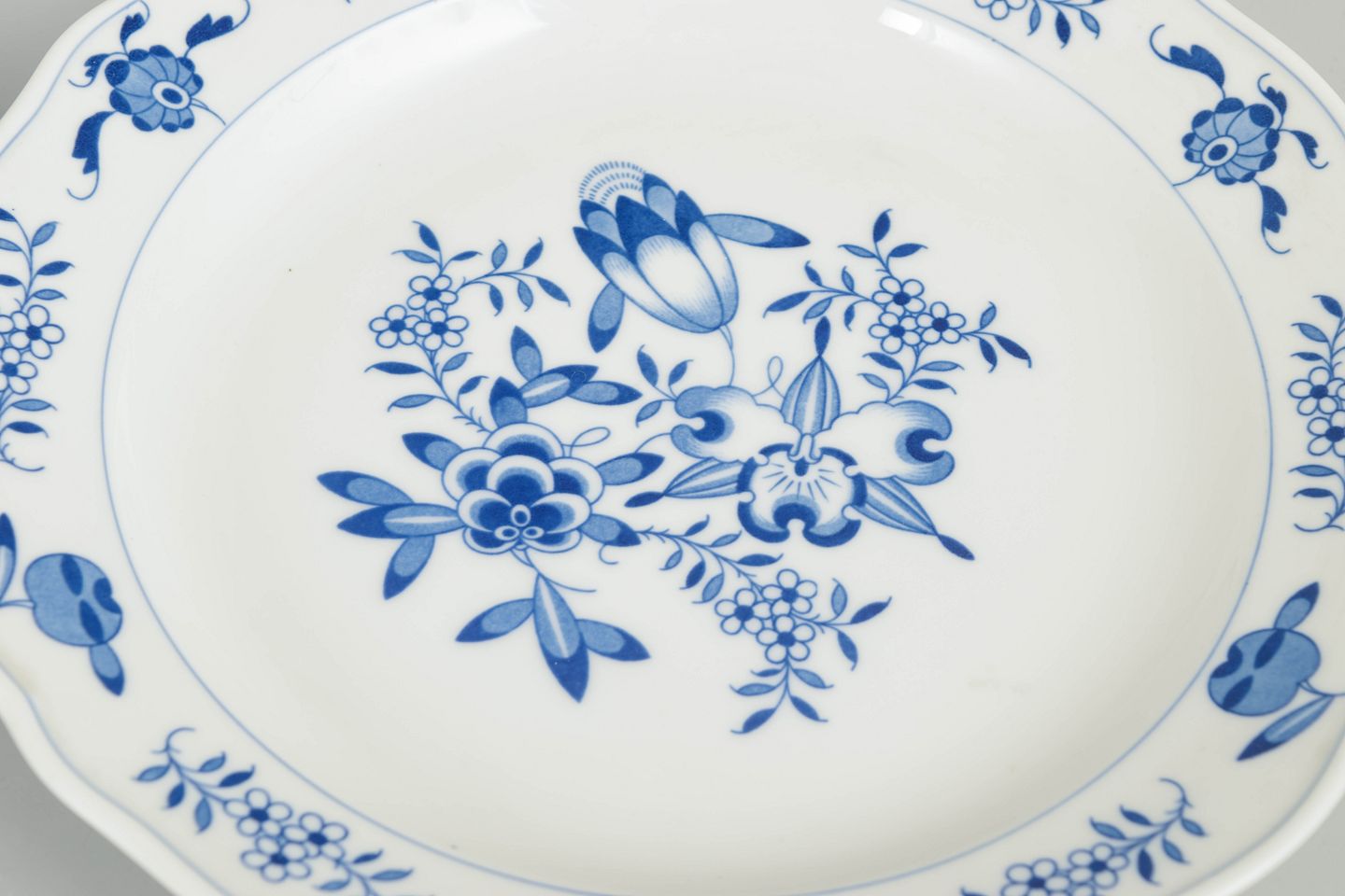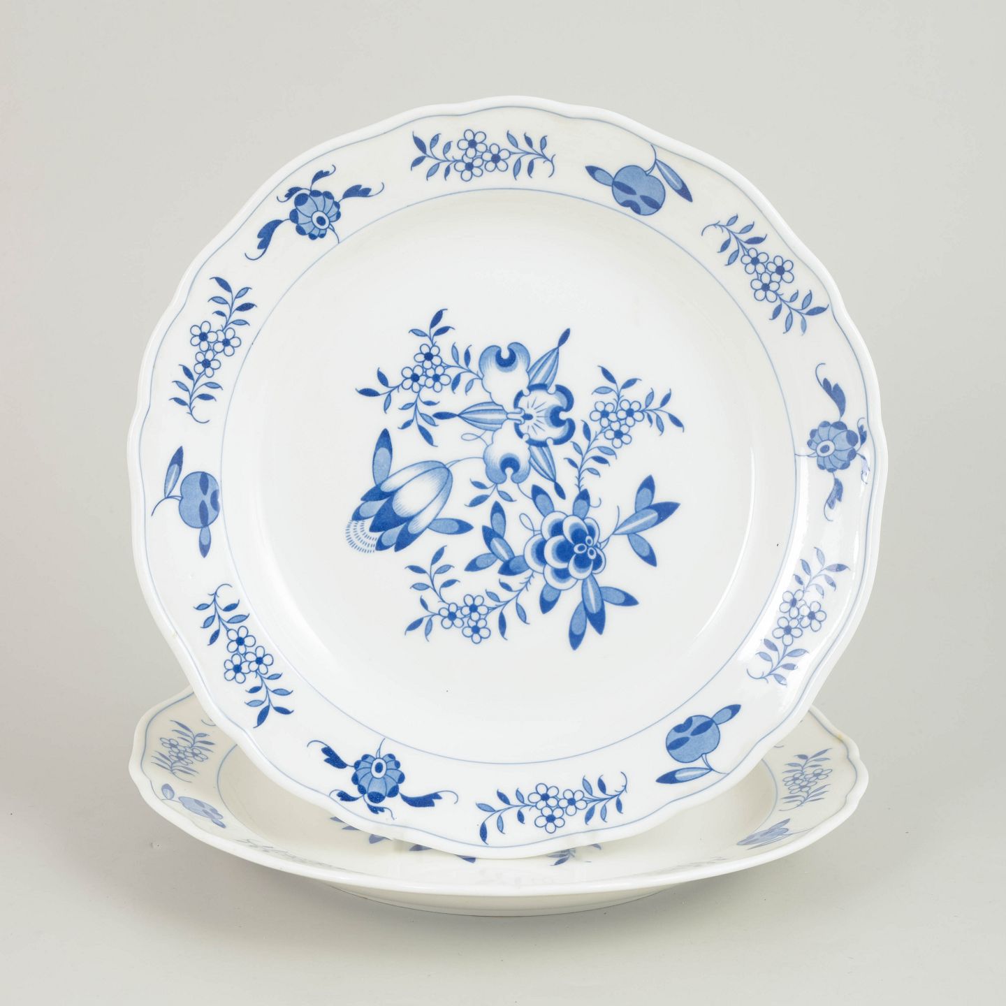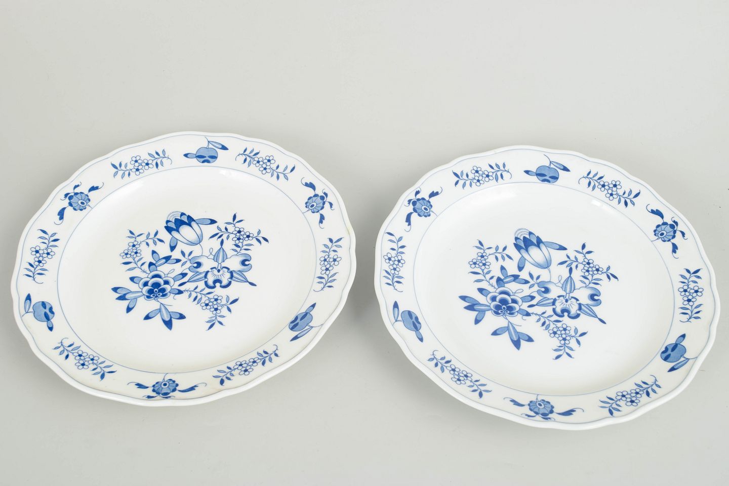 Meissen Blå Orkidé, to frokosttallerkener.Sæt af to frokosttallerkener i håndmalet porcelæn med Blå Orkidé dekoration. Fremstillet hos Meissen og mærket med Meissen krydssværd. Annulleret med to indridsede streger under bunden.