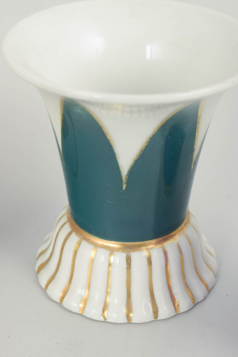 Tysk porcelænsproduktion i art deco-perioden i 1920’erne og 1930’erne var præget af elegante former og dekorative farvefelter kombineret med forgyldning. Mange porcelænsfabrikker fremstillede små dekorative vaser i karakteristiske art deco former, som i dag er eftertragtede samlerobjekter.