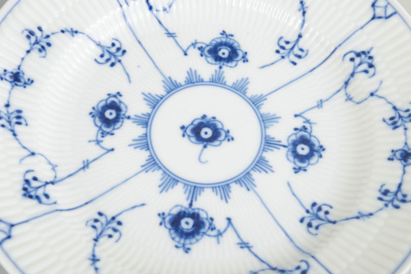 Royal Copenhagen blev grundlagt i 1775 i København under kongelig bevilling. Fabrikken er internationalt anerkendt for sit håndmalede porcelæn og sit høje kunstneriske niveau. Musselmalet Riflet er fabrikkens mest klassiske stel, introduceret i slutningen af 1700-tallet og fortsat produceret med traditionelle håndværksmetoder.