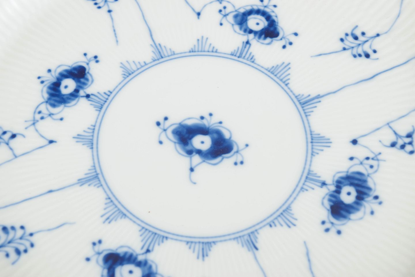 Royal Copenhagen blev grundlagt i 1775 i København under kongelig bevilling. Fabrikken er internationalt anerkendt for sit håndmalede porcelæn og sit høje kunstneriske niveau. Musselmalet Riflet er fabrikkens mest klassiske stel, introduceret i slutningen af 1700-tallet og fortsat produceret med traditionel håndmalingsteknik.