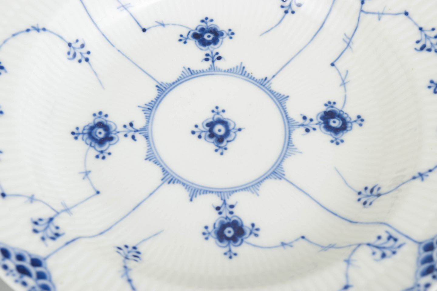 Royal Copenhagen Musselmalet Halvblonde sæt af fire dybe tallerkener.Sæt af fire dybe tallerkener i håndmalet porcelæn fra Musselmalet Halvblonde med klassisk underglasurdekoration i koboltblå og karakteristisk blondekant. Model 1/565. Første sortering.
