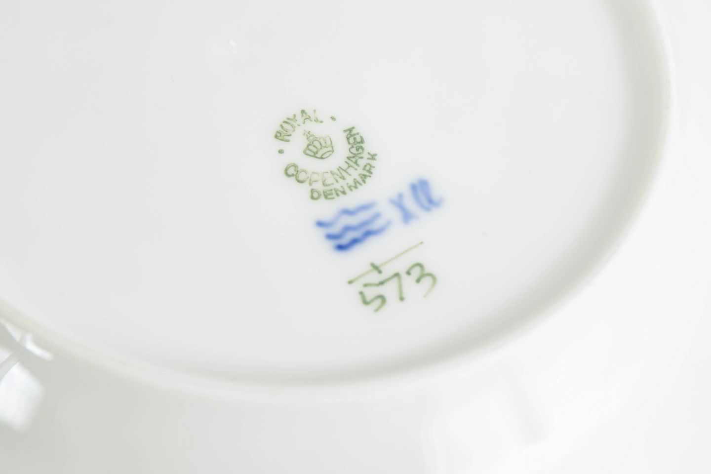 Royal Copenhagen blev grundlagt i 1775 i København under kongelig bevilling. Fabrikken er internationalt anerkendt for sit håndmalede porcelæn og sit høje kunstneriske niveau. Musselmalet Halvblonde er en videreudvikling af det klassiske Musselmalet stel, hvor de riflede flader kombineres med en gennembrudt blondekant og detaljeret håndmalet dekoration.