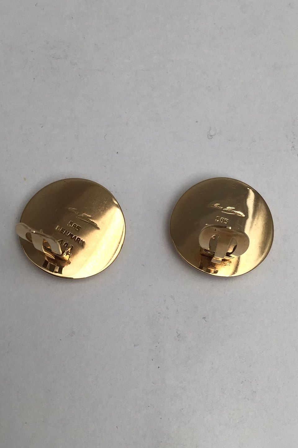 Hans Hansen 14K Guld Øreclips No. 403 Måler Diam 2 cm (0.78 inch) Samlet vægt 11 gr (0.38 oz)Lager: 1