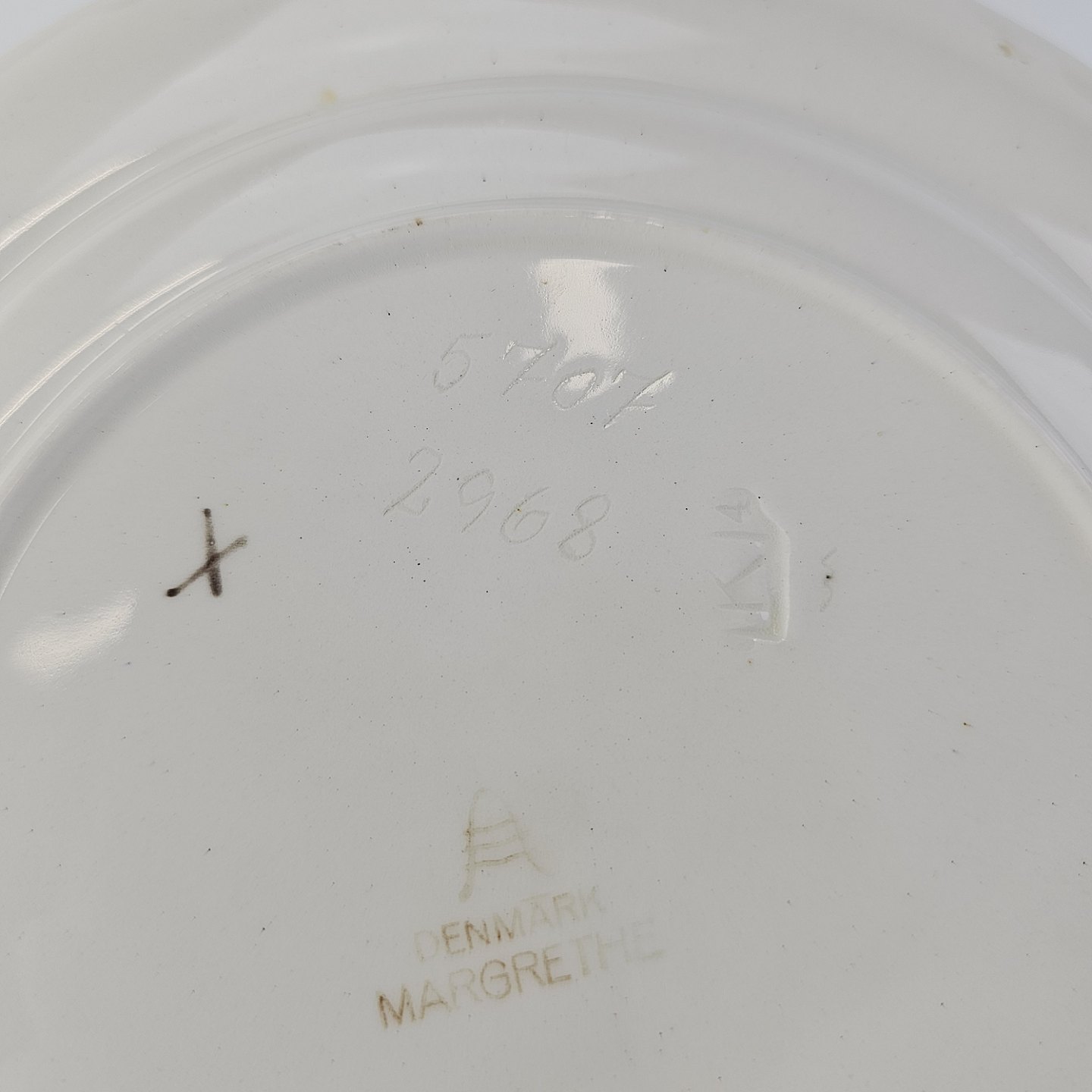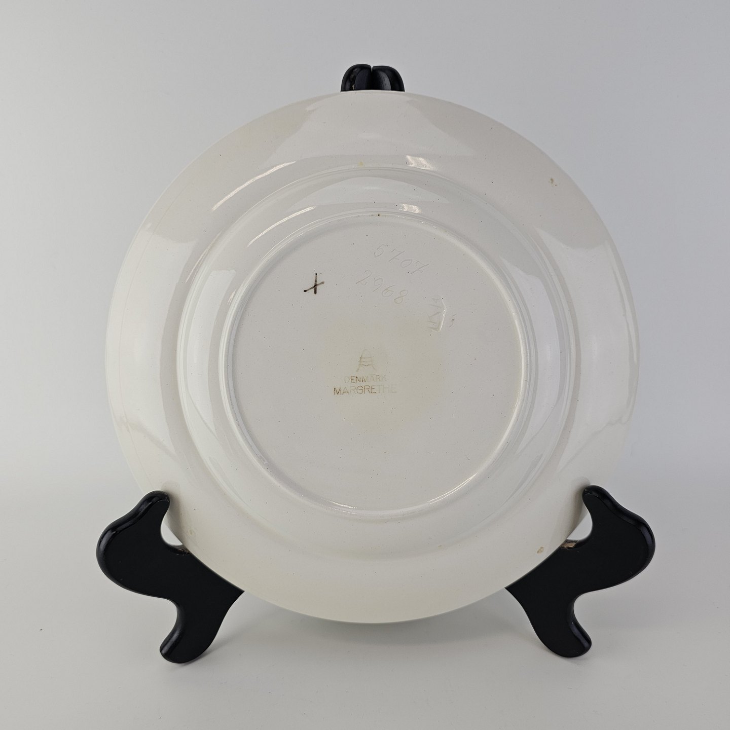 Flad frokosttallerken i fajance fra stellet Margrethe fremstillet i perioden 1937-1940.Nr. 5707/2968